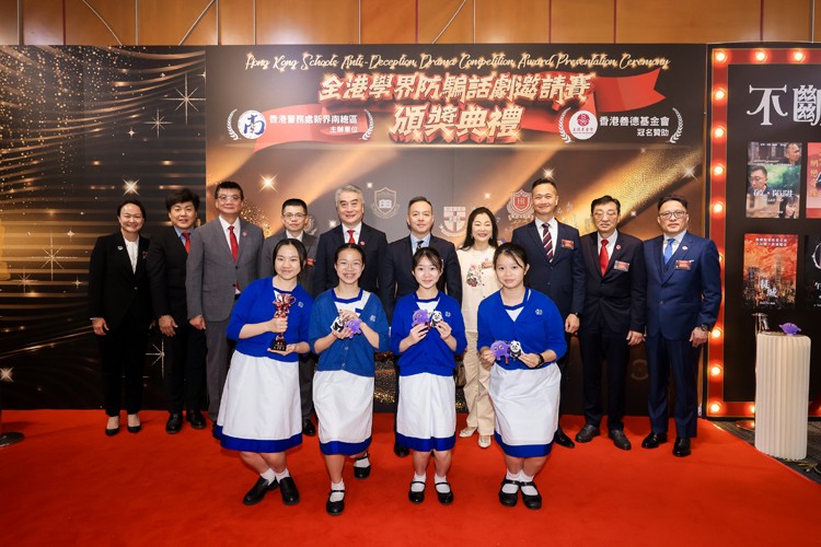警務(wù)處新界南總區(qū)今日(27日)在香港警察總部舉辦「全港學(xué)界防騙話劇邀請賽」頒獎典禮,邀請賽由香港善德基金會冠名贊助,並創(chuàng)下「最多人參與的防騙話劇比賽」的世界紀(jì)錄。