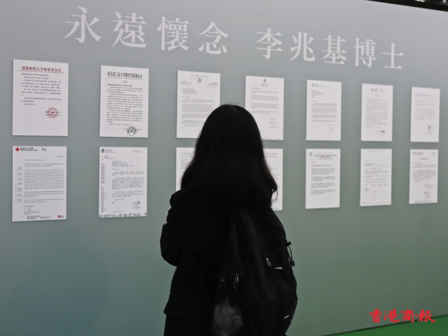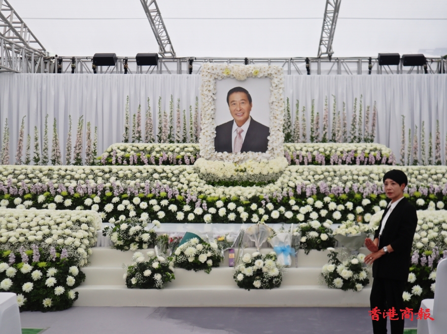 殯儀館對(duì)出球場(chǎng)另設(shè)大型悼念區(qū),不少員工及市民到場(chǎng)向李兆基道別。
