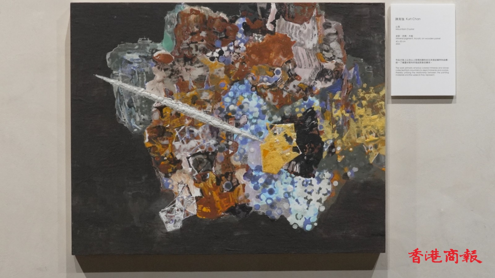 走進(jìn)幾乎都是畫(huà)作的展覽現(xiàn)場(chǎng),往左看,落地窗邊擺著兩塊巨大的巖石狀的裝置作品。它們的創(chuàng)作者是香港巖彩藝術(shù)學(xué)會(huì)副會(huì)長(zhǎng)朱秋慧。紙、石膏和巖彩都是來(lái)源於自然的材料,作品展現(xiàn)了天然色彩的細(xì)膩和純粹,如同藝術(shù)家認(rèn)為作品是喜悅的感受本身;朱秋慧認(rèn)為運(yùn)用巖彩是一個(gè)冥想的過(guò)程,顏色隨著不斷的疊加產(chǎn)生變化,常常帶來(lái)不可預(yù)期的效果。她提到,自己和鍾大富一起在香港巖彩藝術(shù)學(xué)會(huì)推廣巖彩,給予藝術(shù)家更多的媒介選擇。