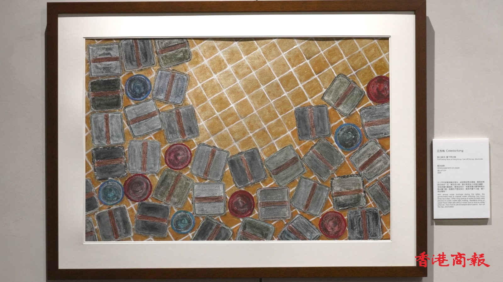 在展覽中,如果觀者仔細(xì)看畫(huà)家江秀梅作品,會(huì)發(fā)現(xiàn)她是以孩童時(shí)的記憶為題,紀(jì)念了六十年代香港制水時(shí)期的生活情景。當(dāng)年,每四天才供水一次,每次四個(gè)小時(shí),家家戶戶提著水桶到街上排隊(duì)打水。畫(huà)面中鋪設(shè)的石磚地面,是當(dāng)年香港常見(jiàn)的街道景象。江秀梅以巖彩記錄了當(dāng)年打水的場(chǎng)景,也表達(dá)出對(duì)水資源的重視和對(duì)今天生活的感恩。隨著東江水的引入,香港才長(zhǎng)期擺脫水荒。這幅作品在回望歷史的同時(shí),也提醒人們珍惜今天看似唾手可得的資源。