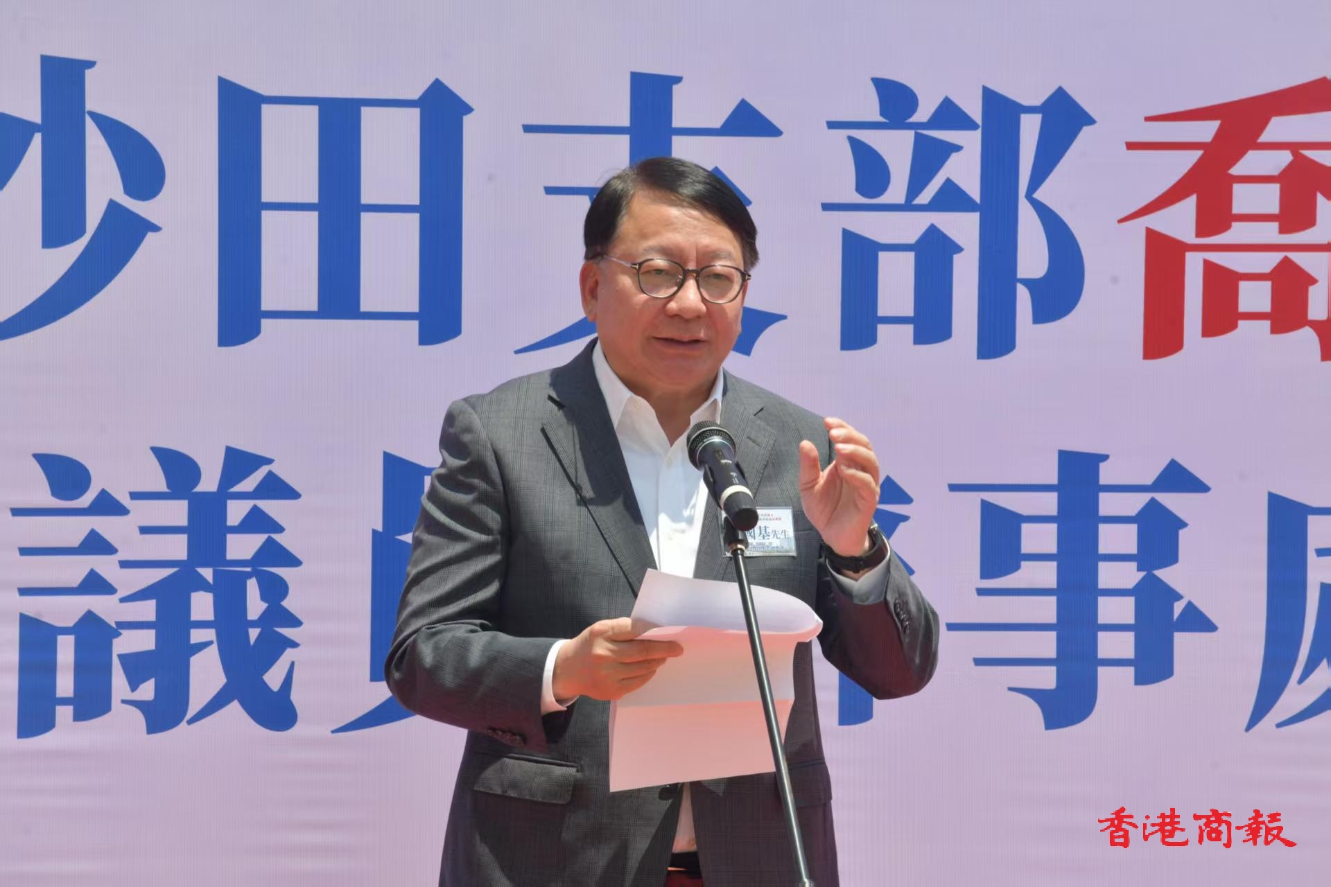 頂圖:民建聯(lián)沙田支部喬遷暨立法會(huì)議員陳克勤辦事處開(kāi)幕典禮,今早在乙明邨中央廣場(chǎng)舉行。