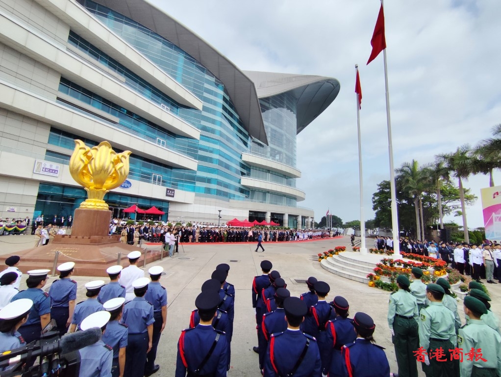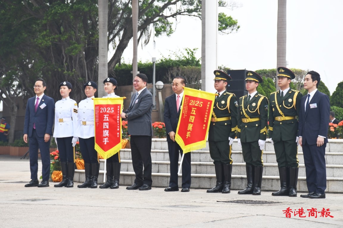 有片|金紫荊廣場(chǎng)舉行五四升旗禮 陳國(guó)基:香港青年追夢(mèng)優(yōu)勢(shì)得天獨(dú)厚
