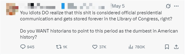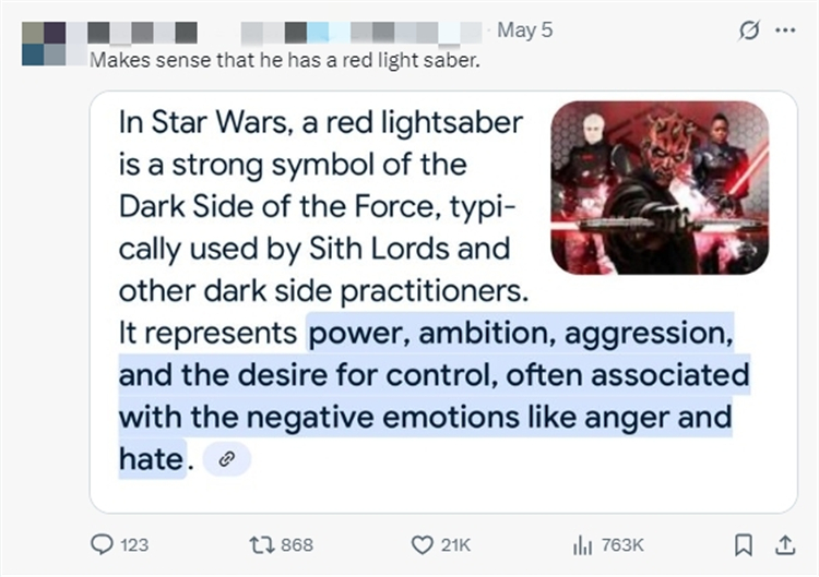 有網(wǎng)友在該推文評論區(qū)中質(zhì)疑內(nèi)容不夠嚴肅。另外一些網(wǎng)友則指出,圖片中特朗普手持的光劍是紅色,並不是「絕地武士」常用的,反而是作品中反派「西斯武士」的標誌。