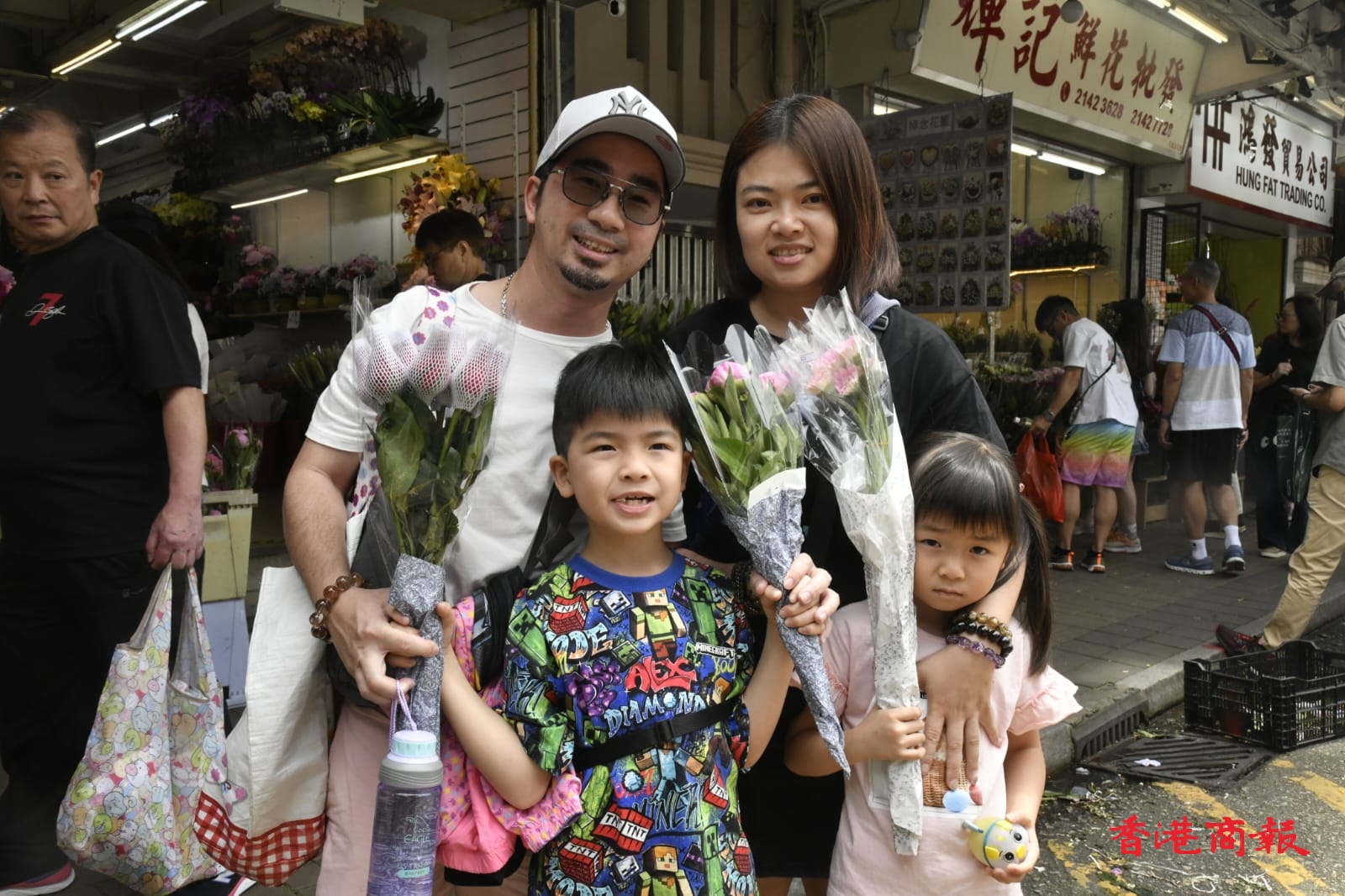 藍(lán)先生與太太和一對子女前來買了三束鮮花,消費300元。他說:「每年都是差不多這樣過,先來買花,之後在九龍的商場行下,晚飯會吃西餐,一整天的消費約1000元;北上的話,要趕頭趕命,帶住小朋友會很攰?!?/p>