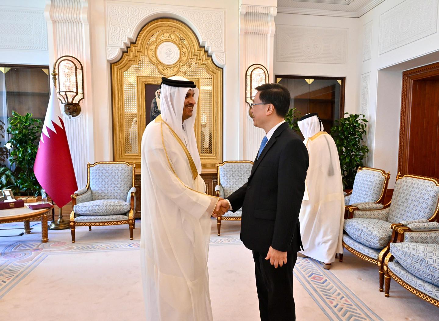 行政長官李家超今日率領(lǐng)香港商貿(mào)代表和內(nèi)地企業(yè)代表抵達(dá)多哈,正式展開卡塔爾與科威特的訪問行程。他今晚(11日)在社交平臺發(fā)文表示,很高興與卡塔爾埃米爾、國家元首HH Sheikh Tamim bin Hamad Al Thani和首相兼外交大臣HE Sheikh Mohammed bin Abdulrahman Al Thani會面,就加強(qiáng)香港與卡塔爾的經(jīng)貿(mào)、投資及人文合作深入交流。