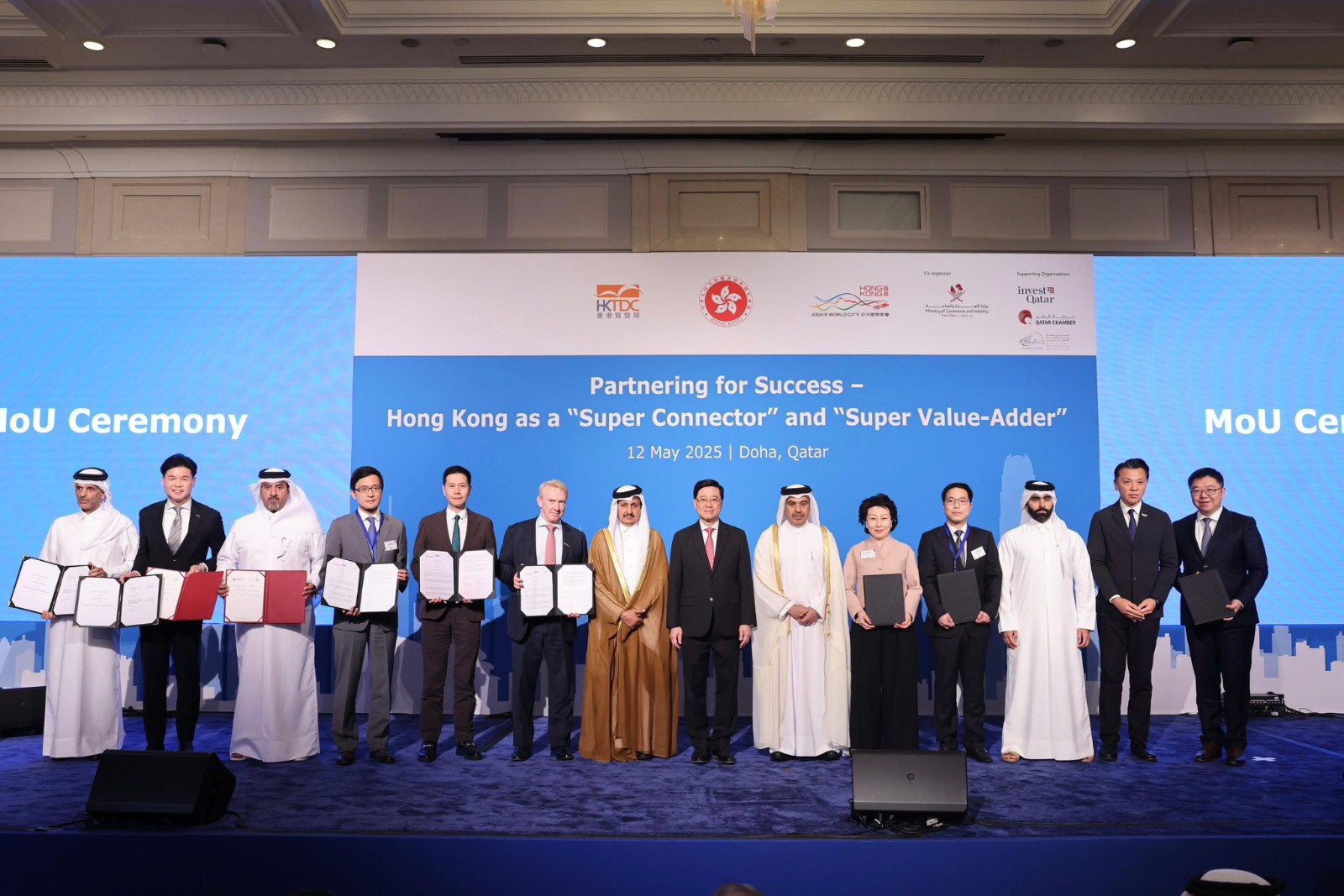 李家超稍早前出席由香港特區(qū)政府和貿(mào)發(fā)局在多哈舉行的商務(wù)午宴,見證35份合作備忘錄及協(xié)議的簽署及交換。