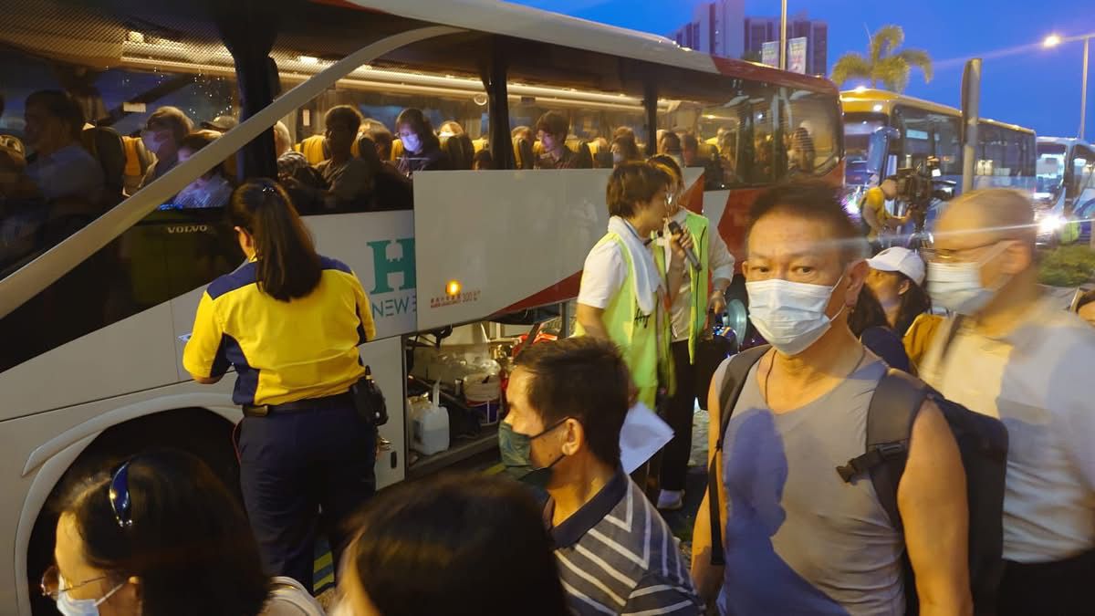 大批受影響乘客在港鐵站外等候接駁巴士。(西貢區(qū)議員張美雄社交媒體圖片)