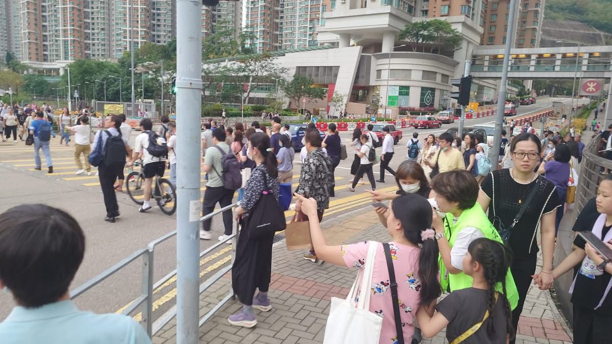 港鐵寶琳站一度關(guān)閉,大批市民等候乘搭接駁巴士或步行回家。(西貢區(qū)議員方國(guó)珊提供圖片)