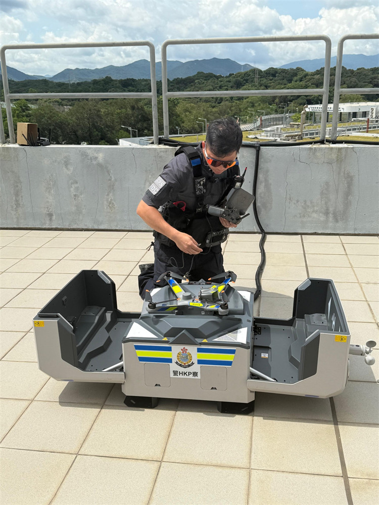 邊界警區(qū)指揮官劉經(jīng)倫總警司今日(23日)率領(lǐng)邊界警區(qū)人員見證小型無人機(jī)啟航。邊界警區(qū)因涵蓋大量鄉(xiāng)村及山林地帶,傳統(tǒng)巡邏需時(shí)較長,使用無人機(jī)巡邏,時(shí)間可以由1小時(shí)縮短至約10至20分鐘,提升打擊罪案能力。而高空監(jiān)察有助偵察及防止爆竊、偷盜等犯罪活動(dòng),並能即時(shí)追蹤犯案者逃跑路線,支援地面警力部署,提高執(zhí)法成效。
