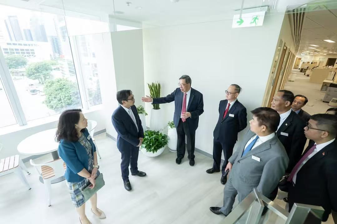 立法會主席梁君彥今天(26日)聯(lián)同多位立法會議員等人,接待了來自東盟10個成員國的駐港領(lǐng)事,大家藉工作午餐的機(jī)會,就香港與東盟如何深化合作交換意見。他亦親自帶領(lǐng)他們參觀會議廳,以及新擴(kuò)建的「三角位」包括天臺花園、活動廳和議員辦公室。