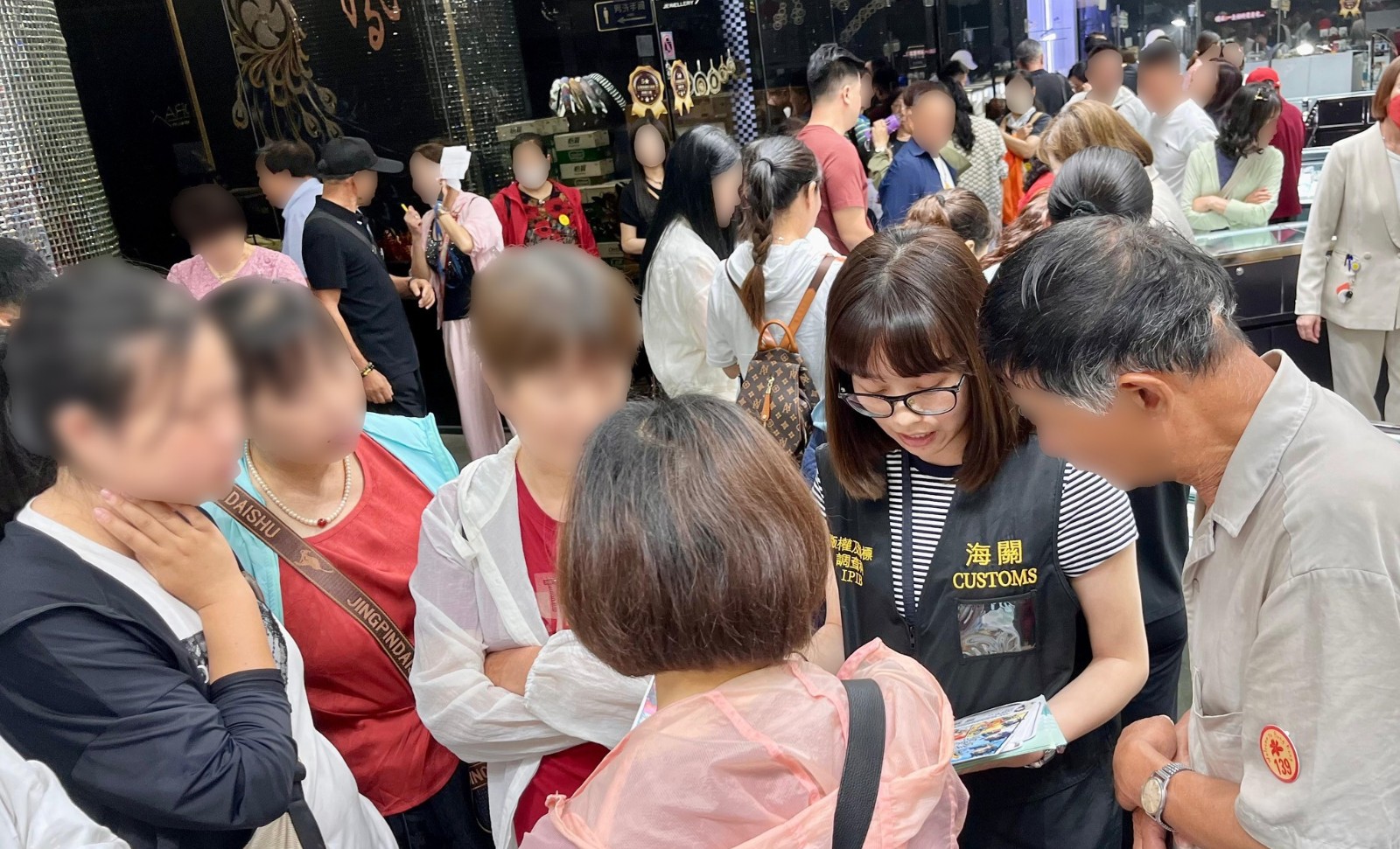 海關(guān)表示,內(nèi)地端午節(jié)長周末臨近,海關(guān)與旅遊業(yè)監(jiān)管局人員日前進(jìn)行聯(lián)合巡查,於土瓜灣和紅磡等多個(gè)旅客熱門購物點(diǎn),向旅監(jiān)局旗下已註冊(cè)的商戶推廣合規(guī)經(jīng)營原則,並提醒商戶須要遵守商品說明條例的規(guī)定。