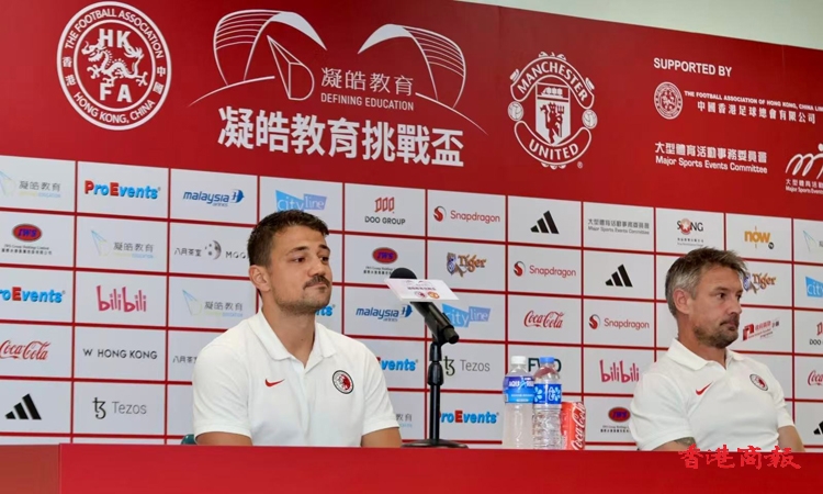 英超球隊曼聯(lián)(紅魔)今日(29日)已經(jīng)抵港,準(zhǔn)備明晚(30日)在香港大球場上演的「凝皓教育挑戰(zhàn)盃」,對中國香港代表隊的表演賽。紅魔剛於周三(28日)在大馬又輸一場,近況欠佳;期望佔主場之利港隊可以迫到客軍使出真功夫。賽事將於明晚8時開打,若然賽和,隨即互射12碼分勝負(fù)。