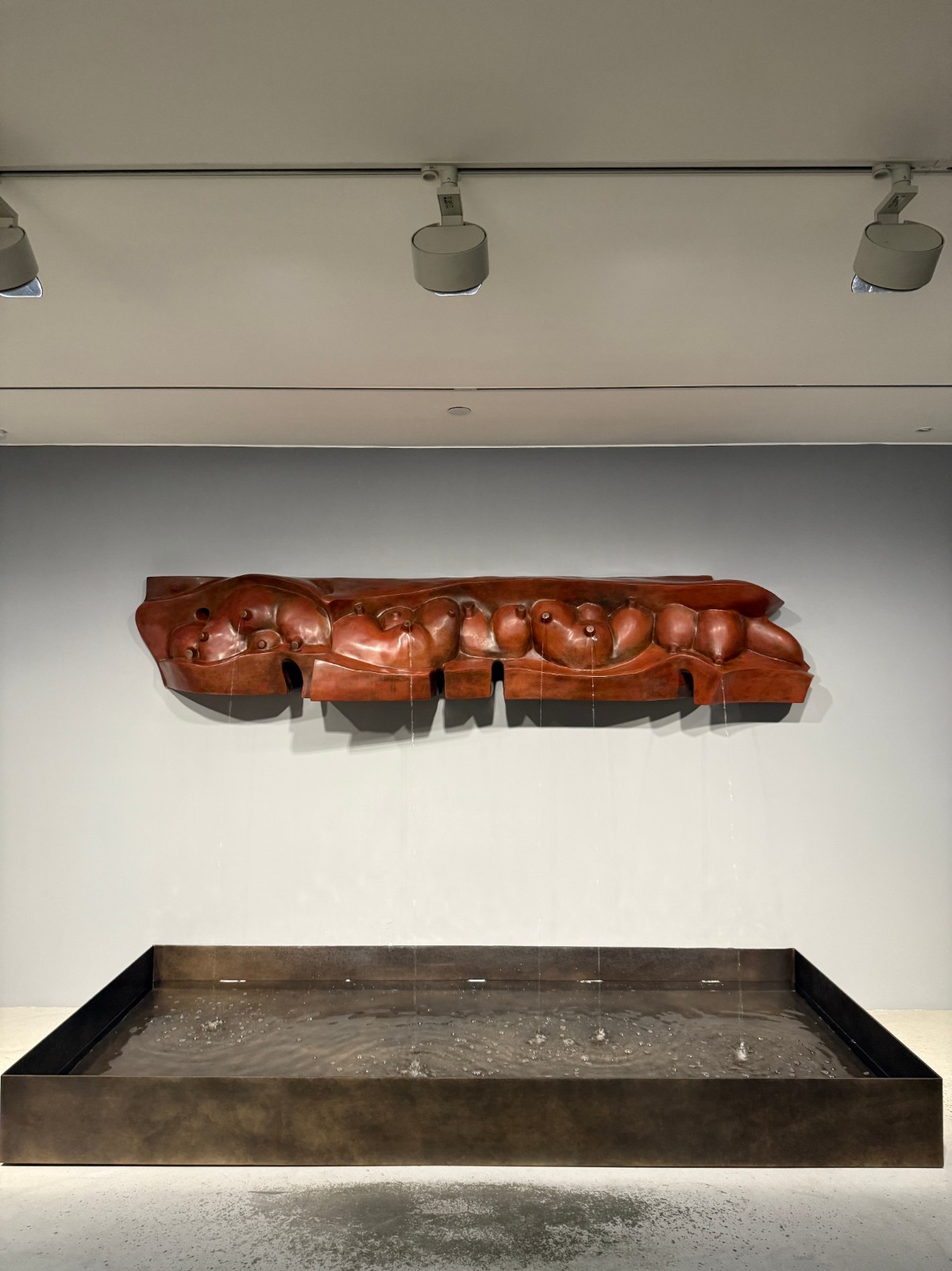 布爾喬亞出生於法國的富裕家庭,卻有個(gè)不幸的童年。重男輕女的家庭、出軌的父親、早逝的母親,均對她造成深遠(yuǎn)的影響,在其作品中時(shí)常能看見「家庭」元素。由一排乳房形狀的長形浮雕組成的青銅噴泉作品《乳房》,水從5個(gè)孔流出,匯集成作品下方的水池,無盡流淌的水象徵了時(shí)間的流逝,亦代表了為孩子提供營養(yǎng)的好母親。另外數(shù)字「5」對藝術(shù)家別富意義,她出生於五口之家,長大成人後組成的家庭也是五個(gè)人,她作為母親既要支持自己的家庭,作為女兒還要支持母親的家庭。菲利普指作品探討了家庭關(guān)係,「將自己的故事作為創(chuàng)作題材,以意象的方式呈現(xiàn),這是布爾喬亞作為藝術(shù)家的能力?!共紶枂虂喴餐ㄟ^藝術(shù)療癒童年的創(chuàng)傷。