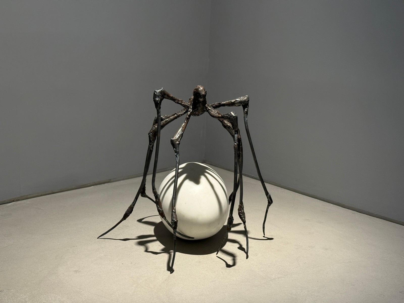 是次為畫廊橫跨6年為布爾喬亞在香港舉辦的第二場個(gè)展,也是首次帶來布爾喬亞標(biāo)的誌性雕塑作品《蜘蛛》。這件展品首次在亞洲展出,與平日所見的巨型蜘蛛不同,雕塑相對以往較為細(xì)小,八隻長腿以保護(hù)姿態(tài)「環(huán)抱」著鴕鳥蛋,巨大尺寸的蛋恍如代表母親的責(zé)任。這一系列蜘蛛作品是藝術(shù)家對母親的歌頌,對她來說蜘蛛既是守護(hù)者,亦是狩獵者,布爾喬亞的母親從事掛毯修復(fù)工作,與蜘蛛一樣善於編織。蜘蛛也是她本人的「自畫像」,布爾喬亞以個(gè)人經(jīng)歷故事創(chuàng)作,正如蜘蛛從自身織出蛛網(wǎng)。
