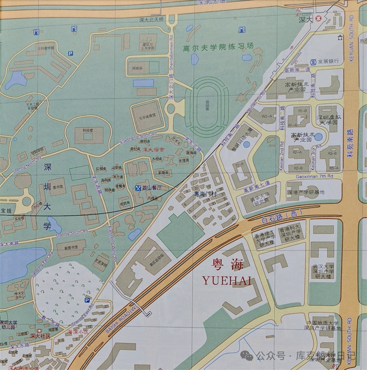 [嚴(yán)格地講,科技南一路是古代的岸線(xiàn),白石路是當(dāng)代(1970年代)的岸線(xiàn)。粵海街道,如它的名字,即是海,是由深大帶頭填出來(lái)的,並衍生出來(lái)的科技、生活盛世海岸家園。在新時(shí)期接著深大填出來(lái)的粵海街道高新科技聚集區(qū),深大校友馬化騰的老樓在北,新樓在南。雄踞麻雀嶺的漢京中心俯視整個(gè)深大。]深鐵金融科技大廈恰在岬角終端下。旁是順豐科技總部(在深投控創(chuàng)智天地大廈)。中國(guó)儲(chǔ)能大廈(CES)顯赫。這就是1號(hào)線(xiàn)深大站C出口。車(chē)停深鐵金融科技大廈。停車(chē)費(fèi)巨貴,一小時(shí)二十元??圃仿芬宦飞掀碌剿善荷健?/p>