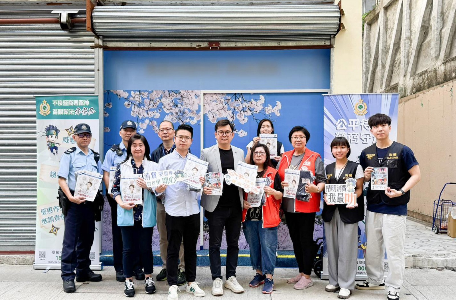 今次宣傳活動(dòng)除海關(guān)及警務(wù)人員外,中西區(qū)區(qū)議員楊開永、劉天正及中西區(qū)關(guān)愛隊(duì)亦有參與。海關(guān)提醒市民,如發(fā)現(xiàn)有懷疑違反《商品說明條例》事宜,可致電海關(guān)24小時(shí)熱線1828080,或透過舉報(bào)罪案專用電郵賬戶或網(wǎng)上表格舉報(bào)。(記者 區(qū)天海)