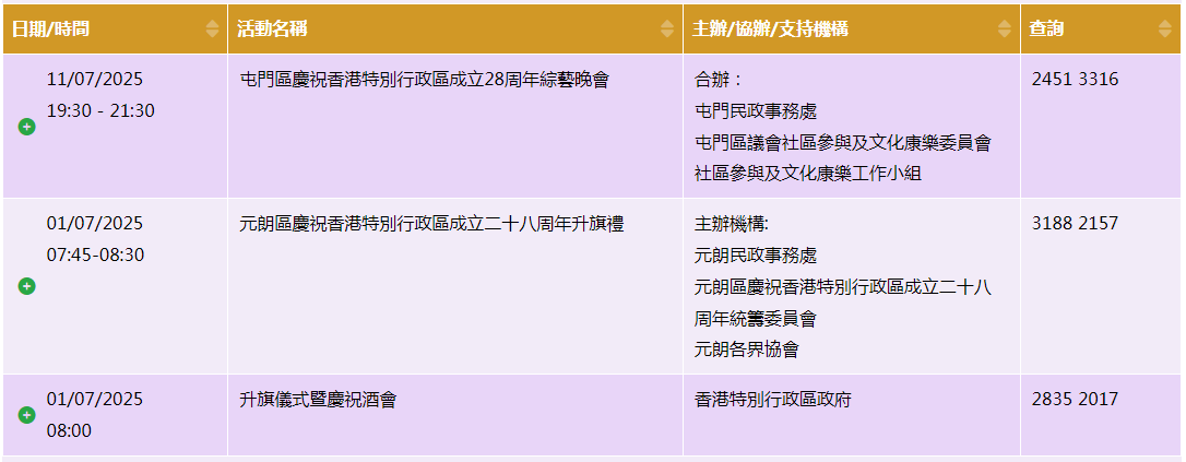 其中,亮點(diǎn)慶祝活動(dòng)23項(xiàng),最重磅的當(dāng)然是七一當(dāng)天早上的升旗儀式和慶祝酒會(huì),還有乒乓球比賽、嘉年華及綜藝晚會(huì)等。
