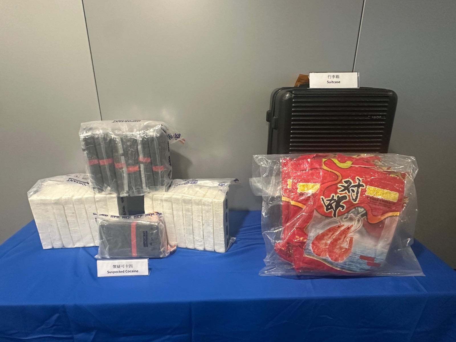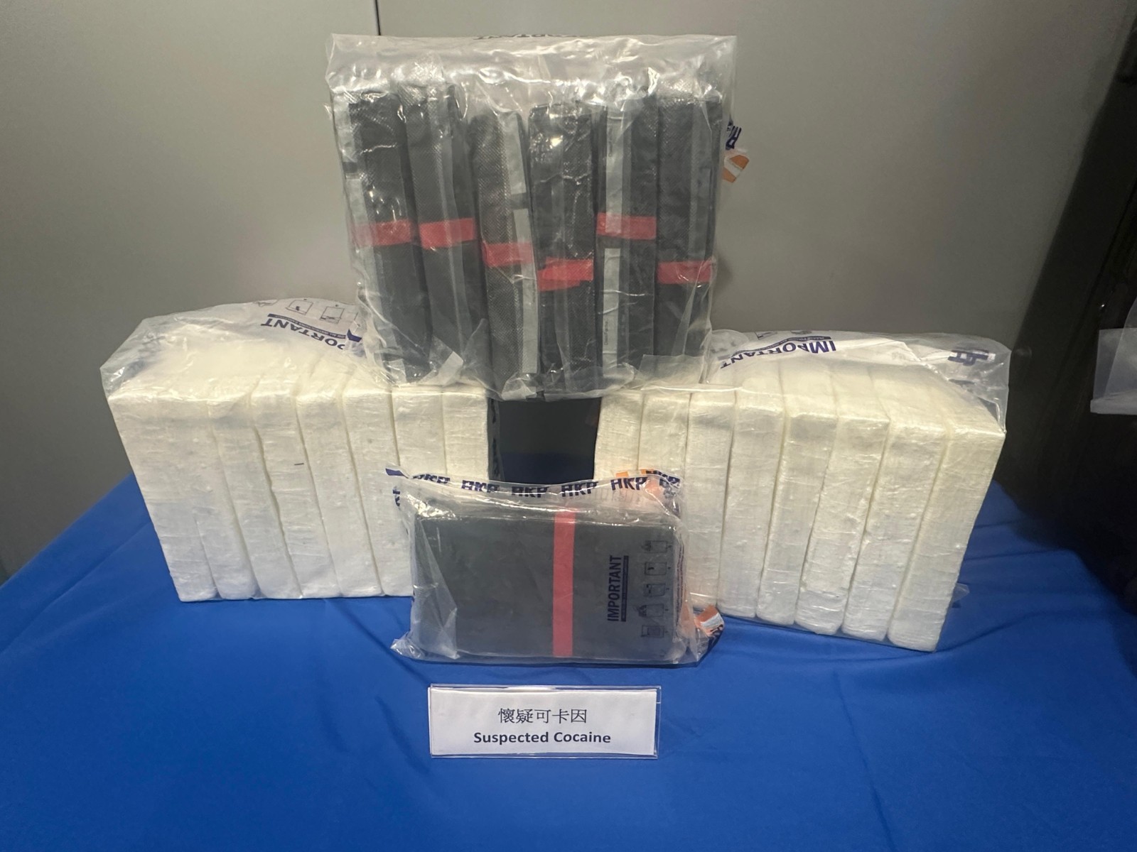 警方毒品調(diào)查科行動組高級督察陳裕詠今日(17日)表示,昨日早上探員根據(jù)情報,在機場入境大堂截查一名剛從美國三藩市入境香港的男子,在海關(guān)人員協(xié)助下搜查男子的行李,並在行李中搜出23磚、每磚約重1公斤的懷疑可卡因,隨即將該名男子拘捕。
