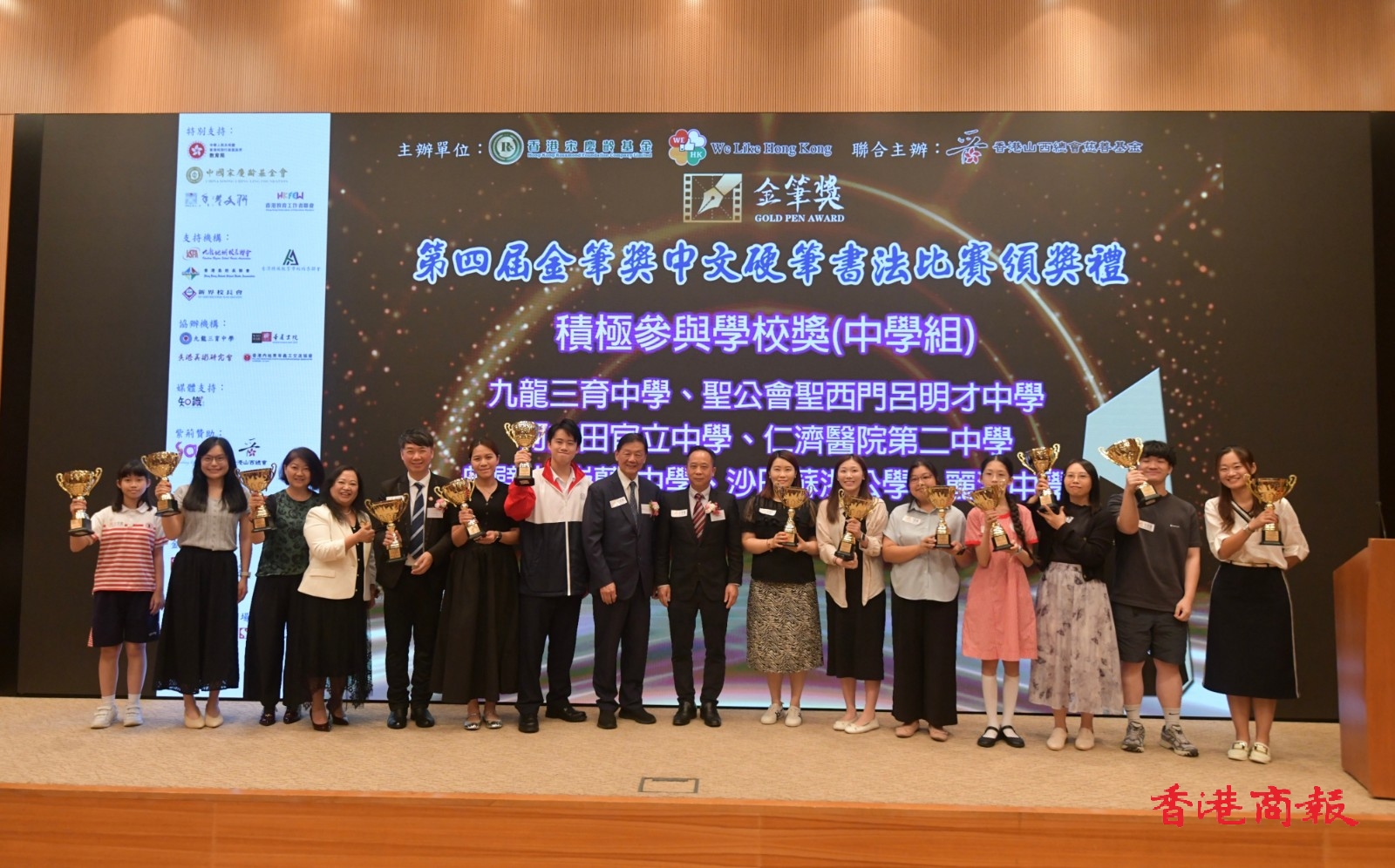 由香港宋慶齡基金、WE LIKE HONG KONG主辦,香港山西總會聯(lián)合主辦的第四屆「金筆獎」中文硬筆書法比賽頒獎典禮暨硬筆書法破世界紀錄啟動式,今日(17日)在灣仔新鴻基中心舉行?;顒訁R聚香港與內(nèi)地443所中小學逾5.8萬份參賽作品,並宣布將於10月挑戰(zhàn)硬筆書法世界紀錄。教育局副局長施俊輝,中聯(lián)辦教育科技部副部長葉水球,香港宋慶齡基金創(chuàng)會會長、港區(qū)全國人大代表胡曉明,香港山西總會代表吳騰等多位政商文教界嘉賓出席,見證兩地青少年以書法傳承中華美德「誠信」的盛況。