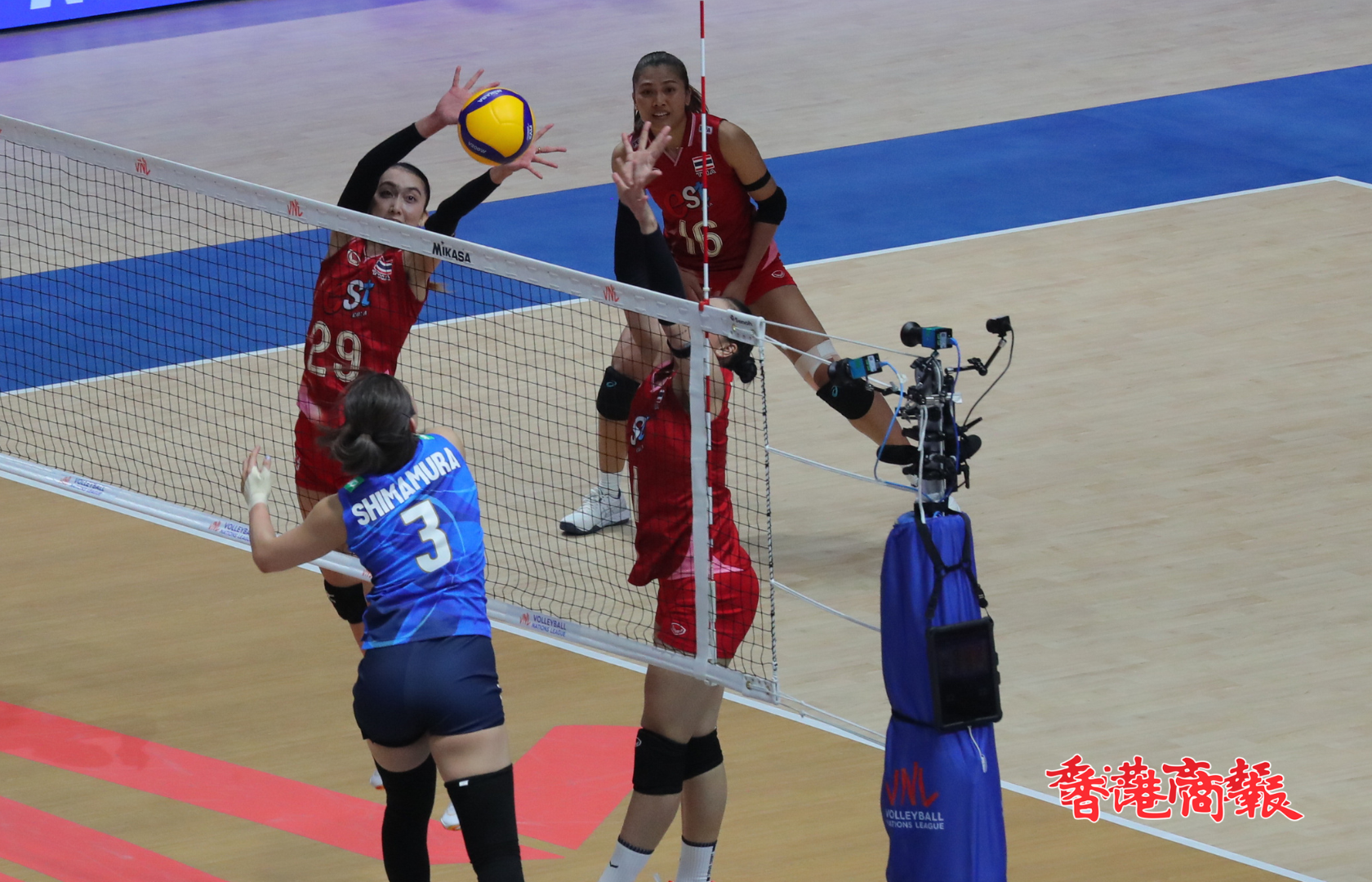 今日第2場賽事,由泰國、日本兩支亞洲球隊(duì)正面交鋒。泰國首局施下馬威贏25比18,第2局險(xiǎn)勝25比23再下一城。落後0比2的日本上演絕地反擊,連贏25比20、25比15,追成2比2平手,來到?jīng)Q勝局,日本乘著後上勢頭再贏15比11,最終以3比2反勝泰國,首戰(zhàn)即贏。另外,香港金牛啦啦隊(duì)「Taurus」亦有到場表演,炒熱現(xiàn)場氣氛。(文/圖/片:志誠)