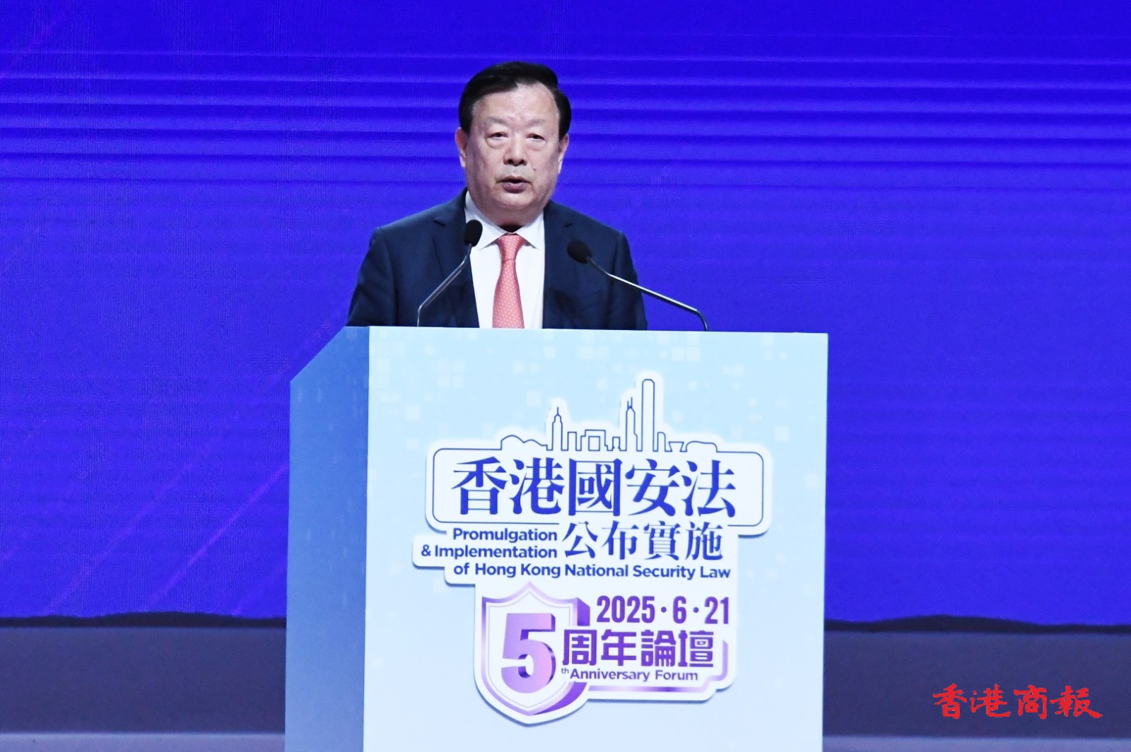中央港澳工作辦公室主任、國務(wù)院港澳事務(wù)辦公室主任夏寶龍出席論壇致辭表示,2020年6月30日,國家主席習(xí)近平簽署第49號主席令,公布實施《中華人民共和國香港特別行政區(qū)維護國家安全法》。從此,香港維護國家安全「不設(shè)防」的歷史一去不復(fù)返,成為香港由亂到治的「分水嶺」,帶來了一系列全局性、變革性、根本性影響,開啟了「一國兩制」實踐的新征程。實踐證明香港國安法是維護國家主權(quán)、安全、發(fā)展利益的好法律,是保持香港長期繁榮穩(wěn)定的好法律,是保護香港市民福祉和外來投資者利益的好法律。當前香港正處於開創(chuàng)新局面、實現(xiàn)新飛躍的關(guān)鍵期,要全面準確、堅定不移貫徹「一國兩制」方針,把握「一國兩制」下維護國家安全的實踐要求,為實現(xiàn)香港更好發(fā)展提供有力安全保障。必須把維護國家安全貫穿「一國兩制」實踐的全過程,必須確保特別行政區(qū)管治權(quán)牢牢掌握在愛國者手中,必須做到維護安全和推動發(fā)展都堅定不移,必須切實保障香港居民人權(quán)自由,必須保持香港的獨特地位和優(yōu)勢。希望香港特別行政區(qū)政府和社會各界團結(jié)一致、搶抓機遇、擔當作為,更好統(tǒng)籌發(fā)展和安全,充分發(fā)揮「一國兩制」制度優(yōu)勢,不斷開創(chuàng)「一國兩制」事業(yè)高質(zhì)量發(fā)展新局面。要貫徹總體國家安全觀,以高水平安全護航高質(zhì)量發(fā)展;發(fā)揮香港內(nèi)聯(lián)外通獨特優(yōu)勢,以開放促進高質(zhì)量發(fā)展;善用香港法治「金字招牌」,以法治保障高質(zhì)量發(fā)展;維護好行政主導(dǎo)體制,提升特別行政區(qū)治理水平,以改革推動高質(zhì)量發(fā)展。