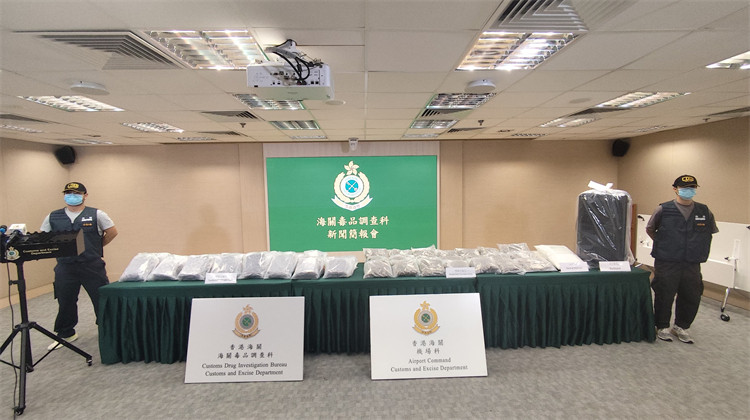 海關(guān)重申,販毒屬嚴重罪行,根據(jù)香港法例第134章《危險藥物條例》,一經(jīng)定罪,最高可被判處罰款500萬元及終身監(jiān)禁,市民切勿以身試法。(記者 區(qū)天海)