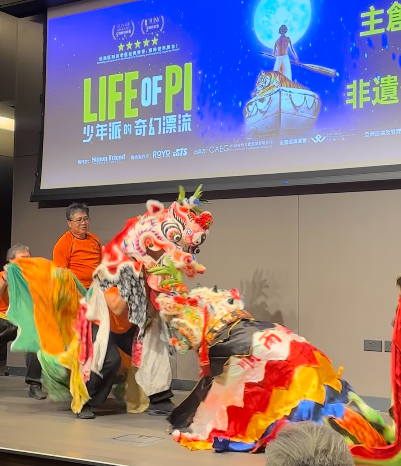見面會當晚特別安排了「西貢坑口客家舞麒麟」表演。少年派主創(chuàng)團隊亦親身體驗如何舞麒麟?!富⑴紤蛉ぃ梓氤氏椤怪梗屛鞣侥九技妓嚺c本地非遺藝術交匯,碰撞出新的火花。(記者 Alphy 圖片 Alphy、官方提供)