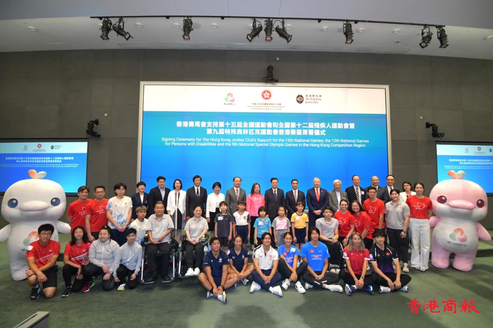 由粵港澳三地首度攜手承辦的第十五屆全國運(yùn)動會(十五運(yùn)會)和全國第十二屆殘疾人運(yùn)動會暨第九屆特殊奧林匹克運(yùn)動會(殘?zhí)貖W會),將分別於今年11月9日至21日以及12月8日至15日舉行。香港賽馬會贊助香港賽區(qū)4.5億元,主要用於義工服務(wù)計劃、全港社區(qū)及學(xué)校推廣活動,以及弱勢社群與青少年觀賽體驗(yàn)安排等。贊助簽署儀式今日(26日)在政府總部舉行,由行政長官李家超見證,文化體育及旅遊局局長羅淑佩與馬會行政總裁應(yīng)家柏代表雙方簽署協(xié)議。