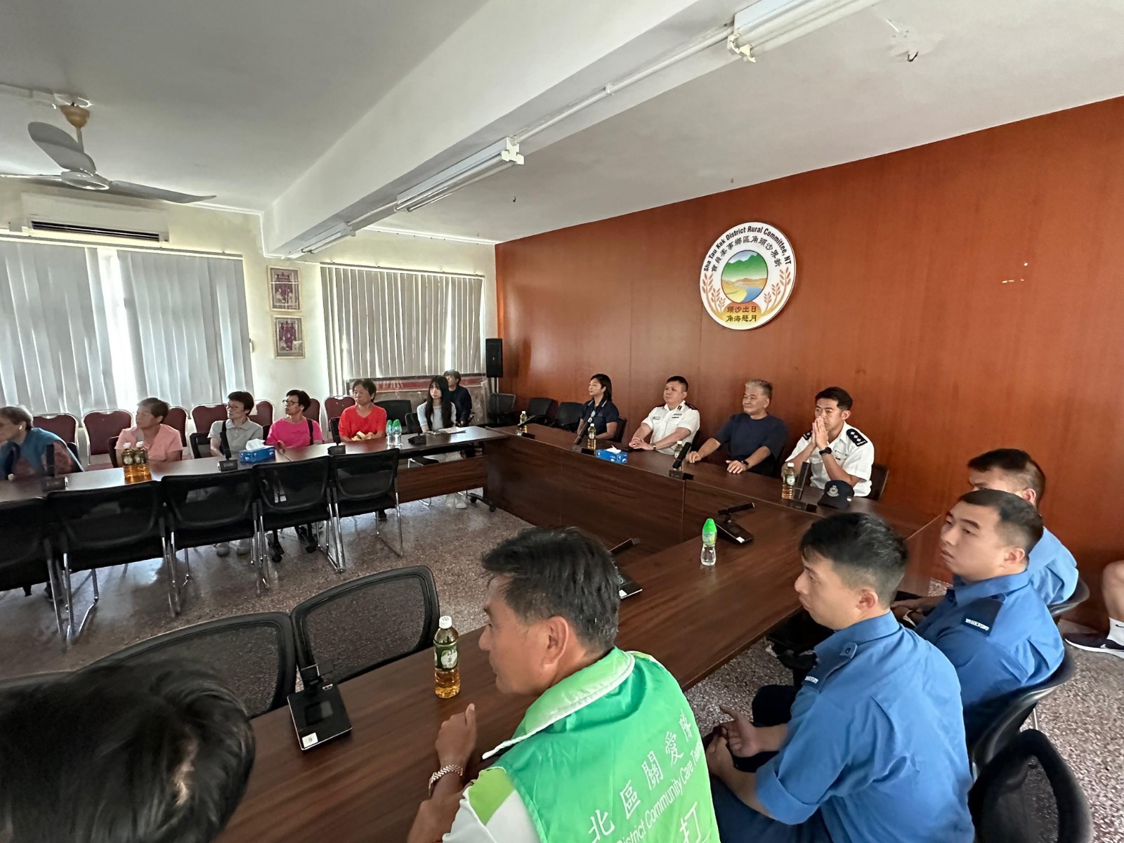 邊界警區(qū)今日(3日)聯(lián)同北區(qū)民政事務(wù)處、消防處、北區(qū)沙打關(guān)愛隊(duì)、沙頭角鄉(xiāng)事委員會(huì)及一眾沙頭角村民在沙頭角墟進(jìn)行應(yīng)對(duì)極端天氣講座及演習(xí)。