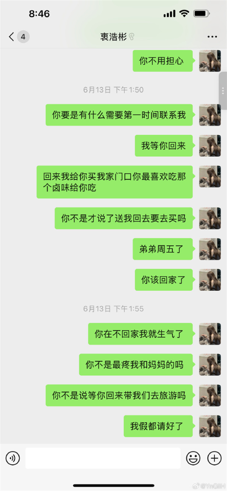 衷女士分享的消息令人揪心:弟弟一直都是很聽話懂事的人,前段時(shí)間爸爸因交通意外去世了,也是弟弟一個(gè)人撐起了整個(gè)家,平時(shí)他一直都很孝順,出去工作也會一直報(bào)備和關(guān)心家中的情況。媽媽還沒從爸爸的離開中走出來,又再一次經(jīng)歷弟弟被拐,身體和心理都已經(jīng)承受不住了。