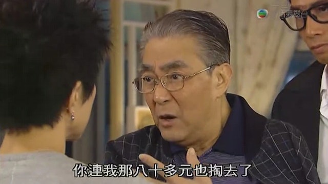 周驄在《溏心風(fēng)暴之家好月圓》演「Sa姨」關(guān)菊英老竇,用湯勺敲她的頭,又叫她「攞婆」,是其代表作之一。(電視截圖)