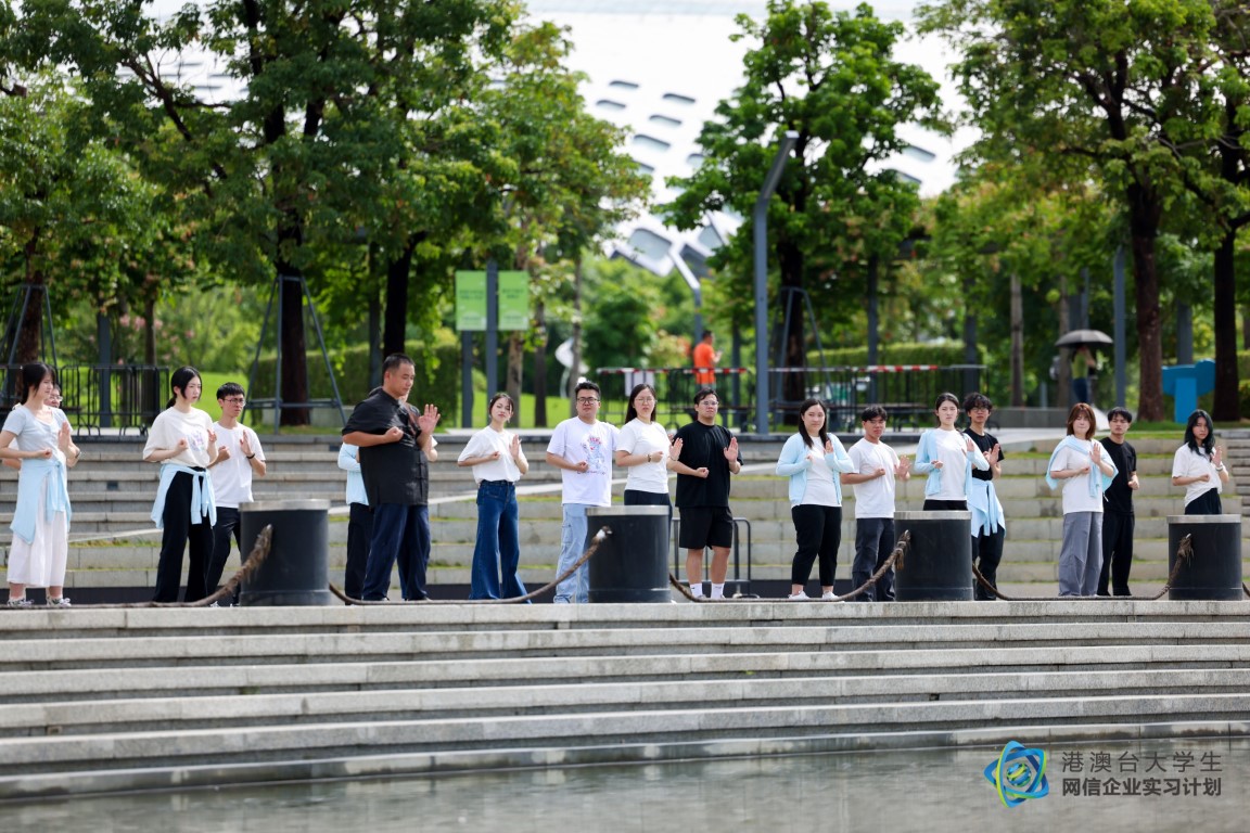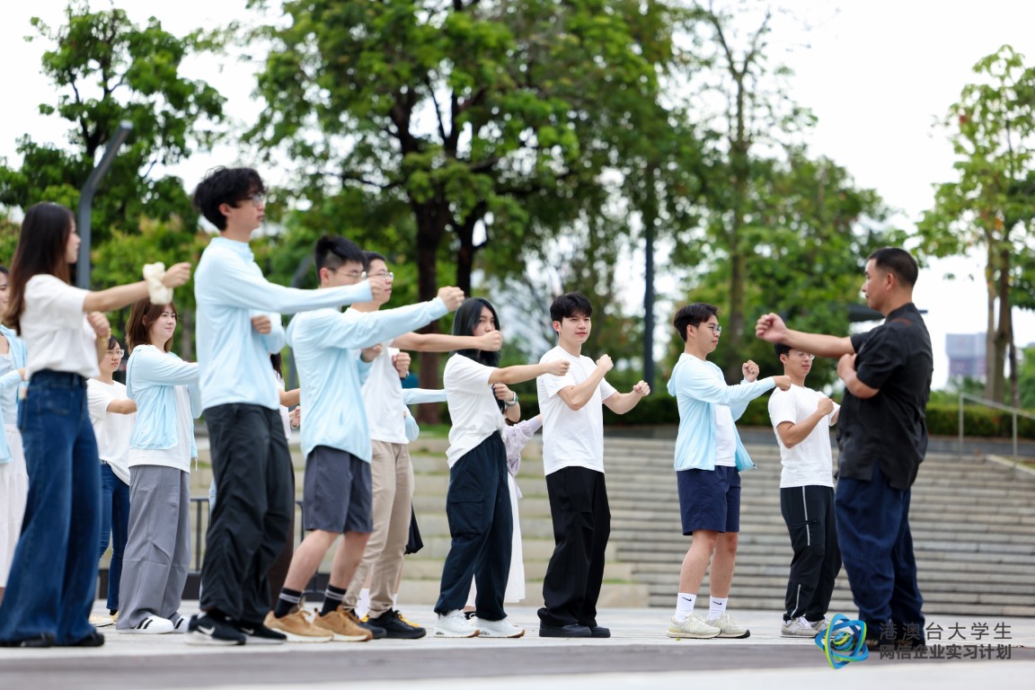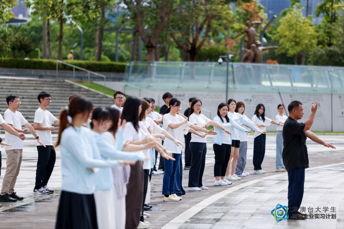 6月28日,參與「2025港澳臺大學(xué)生網(wǎng)信企業(yè)實(shí)習(xí)計(jì)劃(深圳)」的大學(xué)生走進(jìn)深圳人才公園,在專業(yè)老師的帶領(lǐng)下,體驗(yàn)非遺詠春拳這門傳統(tǒng)武術(shù)的魅力。