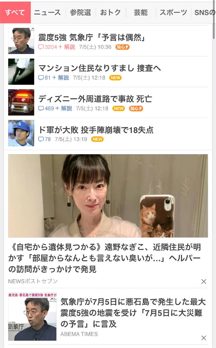 相關(guān)傳聞在日引起關(guān)注,「7月5日地震預(yù)言」成為熱搜詞。(網(wǎng)絡(luò)圖片)