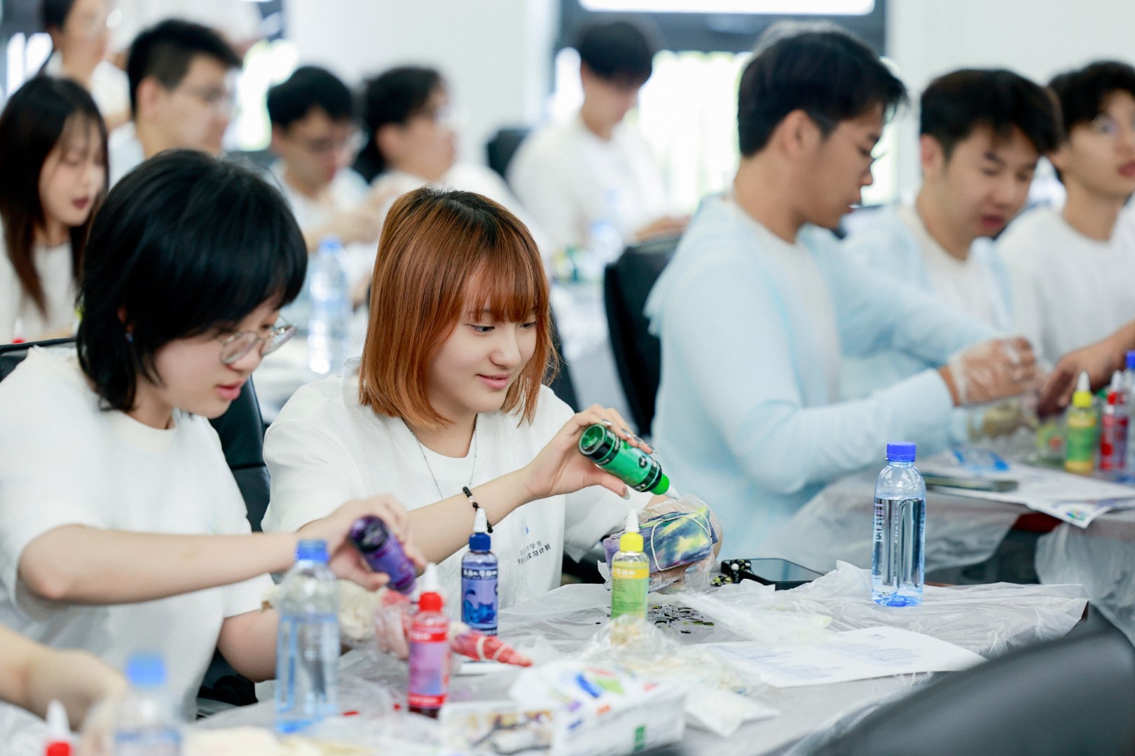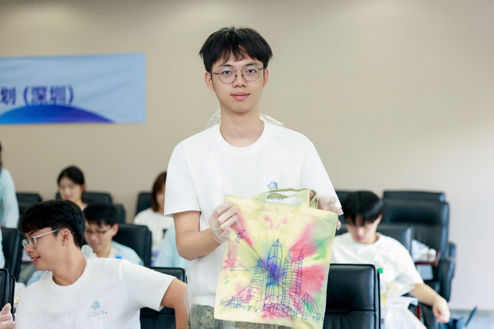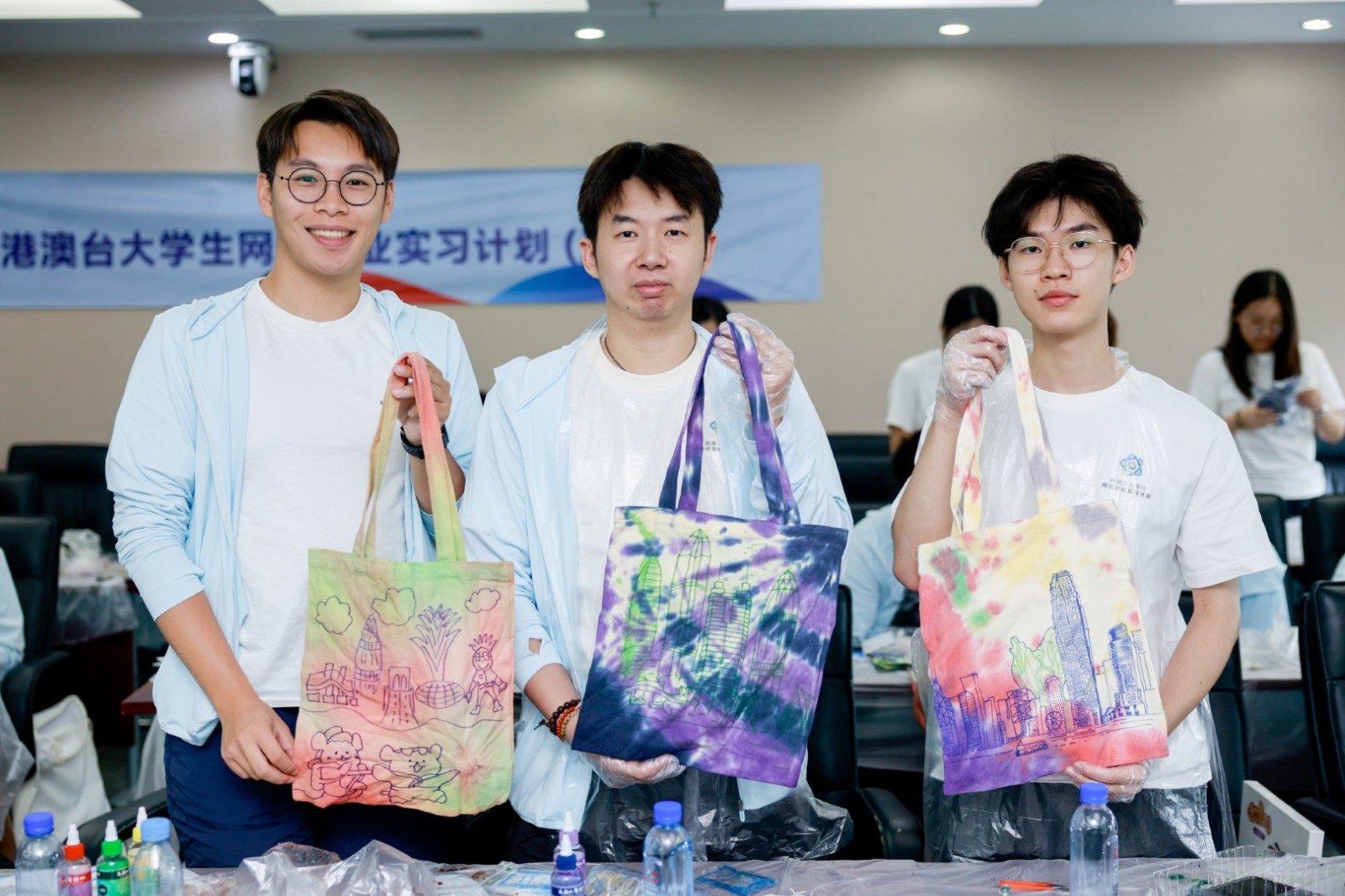 7月5日上午,參與「2025港澳臺(tái)大學(xué)生網(wǎng)信企業(yè)實(shí)習(xí)計(jì)劃(深圳)」的學(xué)生們體驗(yàn)深圳元素非遺紮染。同學(xué)們?cè)诶蠋煹囊龑?dǎo)下,全神貫注地學(xué)習(xí)紮染技藝。他們手持畫(huà)筆在布面上精心描繪,同時(shí)讓皮筋在指尖靈活穿梭。最終,大家創(chuàng)作出了一件件融合了深圳元素、文化底蘊(yùn)與創(chuàng)新思維的手工藝品,深刻領(lǐng)略到了非遺紮染的獨(dú)特魅力。