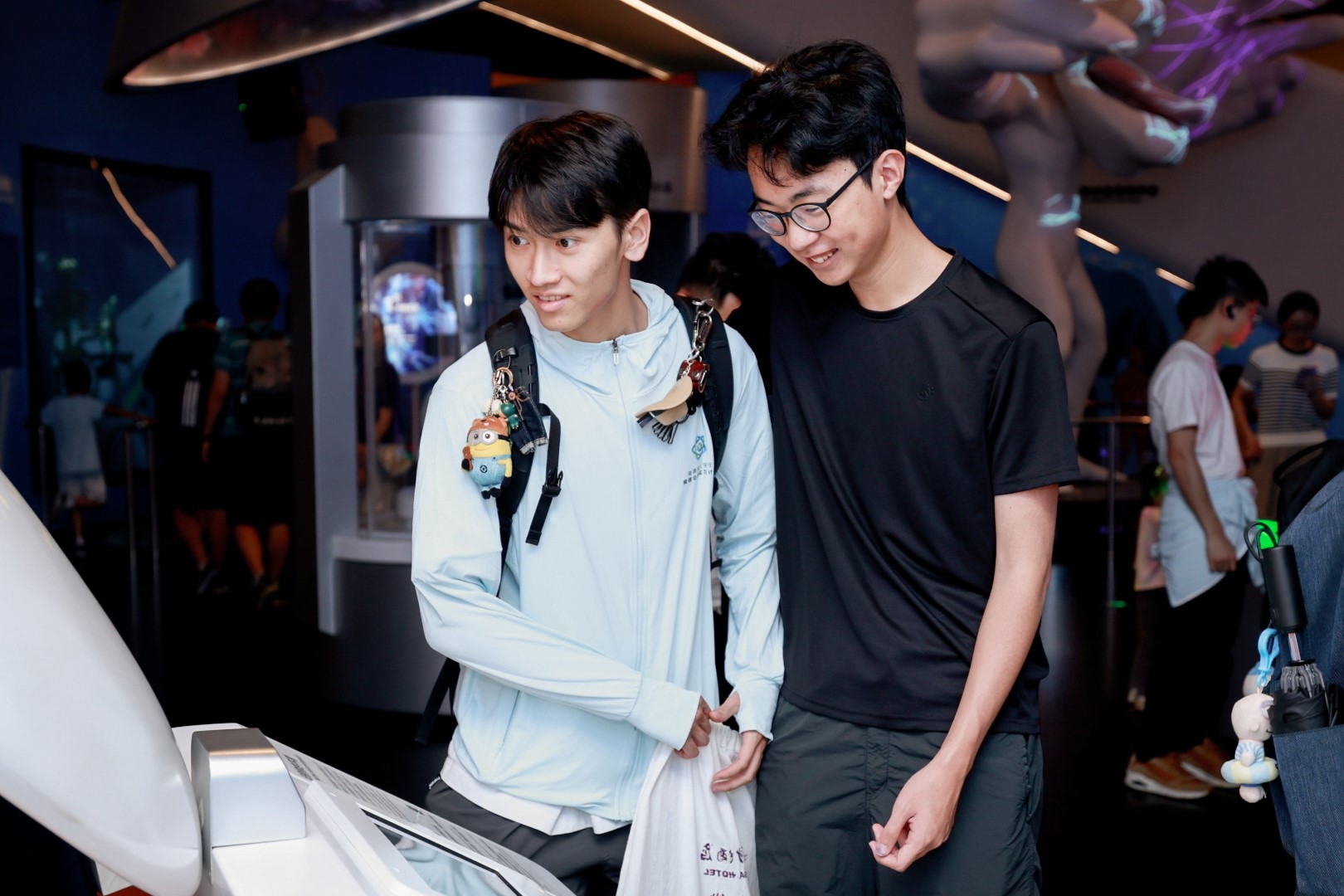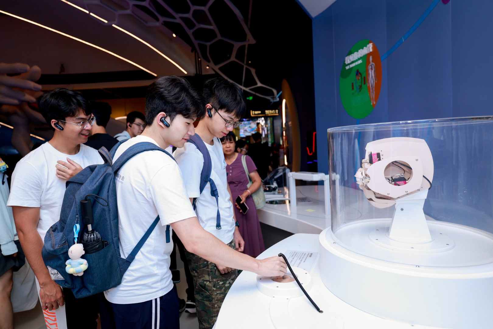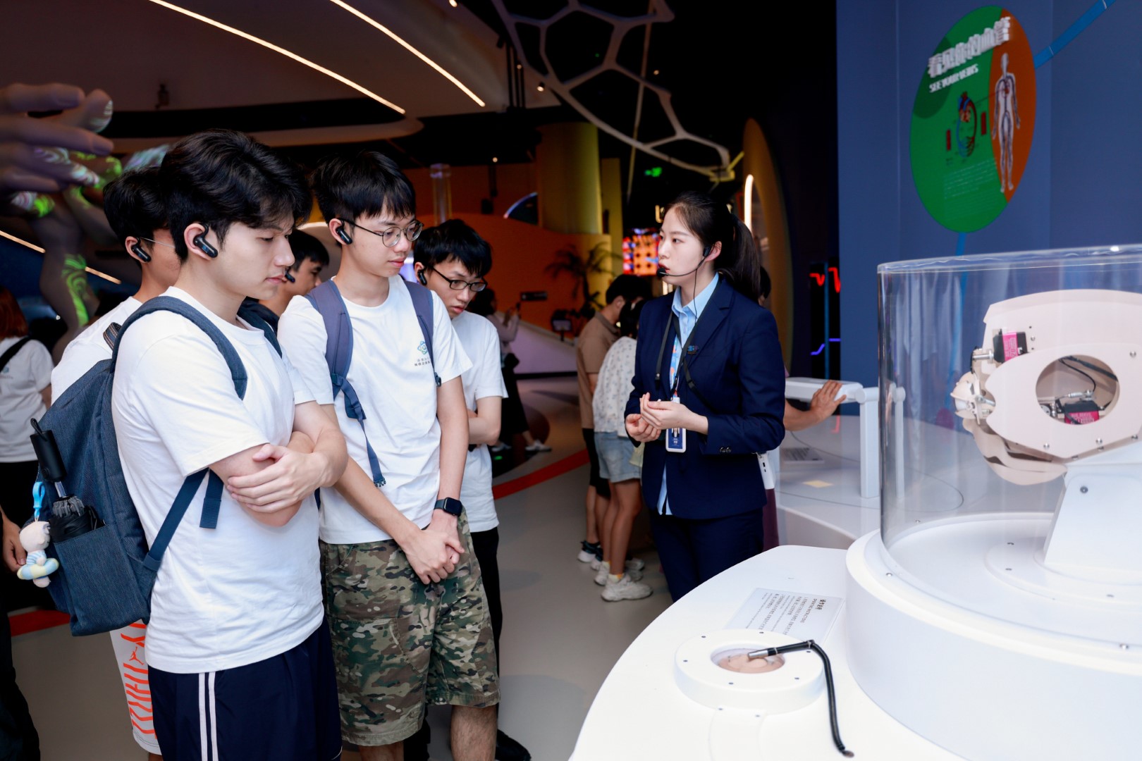 7月5日下午,參與「2025港澳臺(tái)大學(xué)生網(wǎng)信企業(yè)實(shí)習(xí)計(jì)劃(深圳)」的學(xué)生們來(lái)到深圳科學(xué)技術(shù)館。在講解員的引導(dǎo)下,學(xué)生們穿梭於各個(gè)展廳,近距離接觸前沿科技展品。從虛擬現(xiàn)實(shí)的沉浸式體驗(yàn)到人工智能的智能互動(dòng),從航天科技的模型展示到生物科技的微觀(guān)世界,每一處都讓他們駐足流連,進(jìn)一步增強(qiáng)了大家對(duì)科技前沿的認(rèn)知與熱愛(ài)。