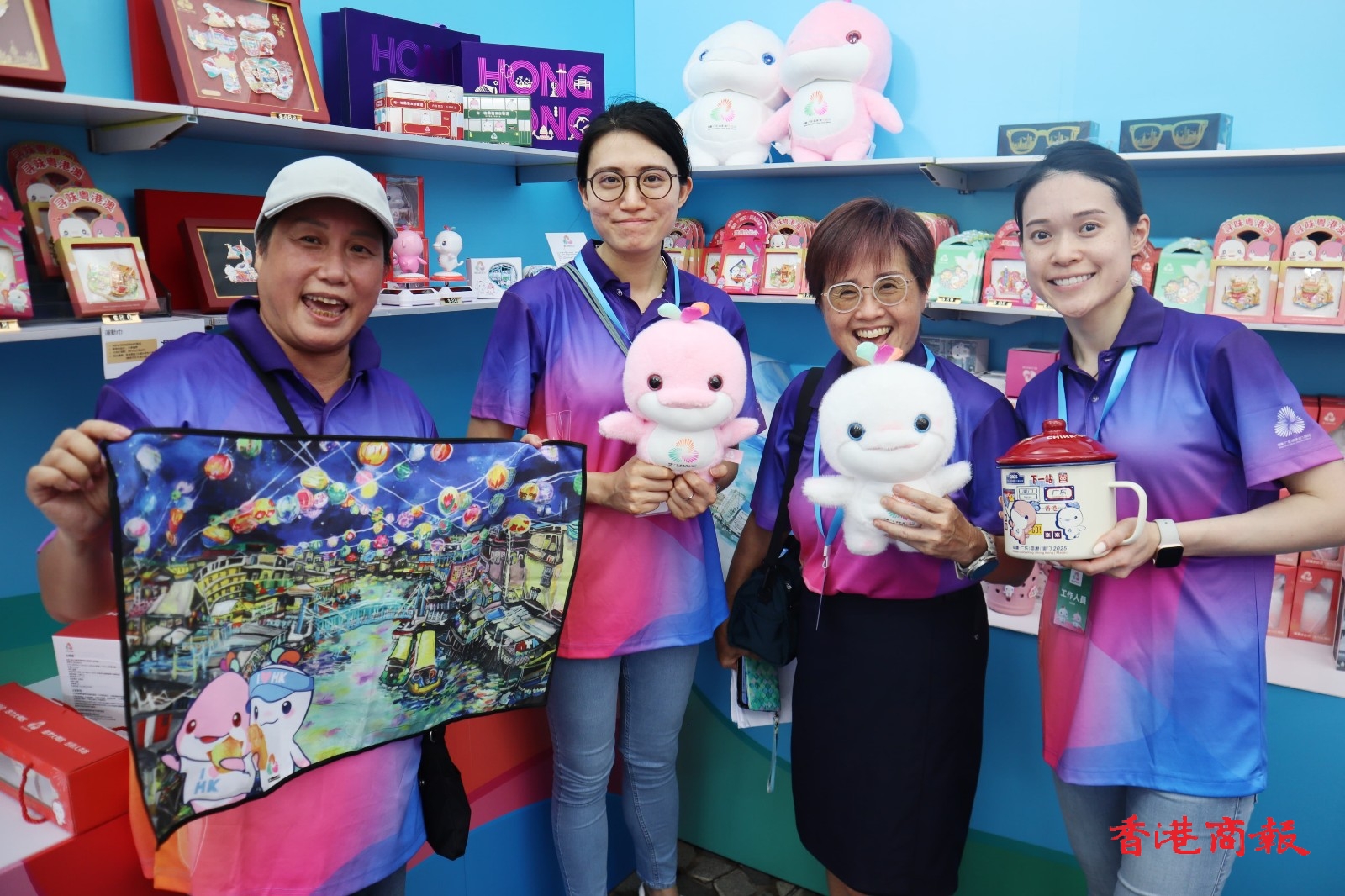 霍震霆更即場購買了2400多元張念品。他向本報記者透露是買給孫兒的,他自己則最喜歡的是白海豚喜祥物「喜洋洋」和「樂融融」。