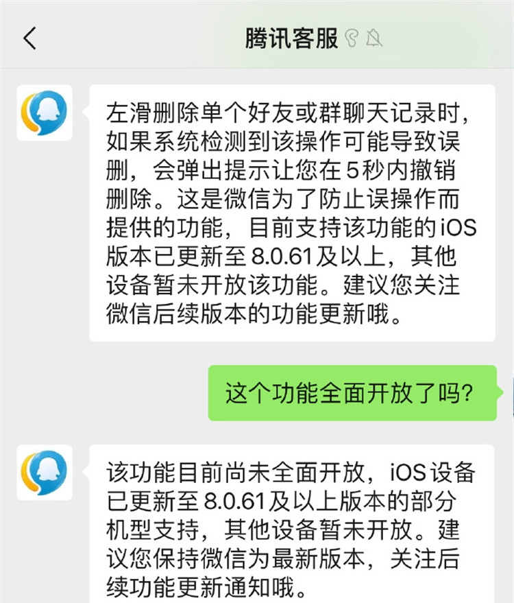 騰訊客服回應(yīng)誤刪微信聊天記錄可撤銷