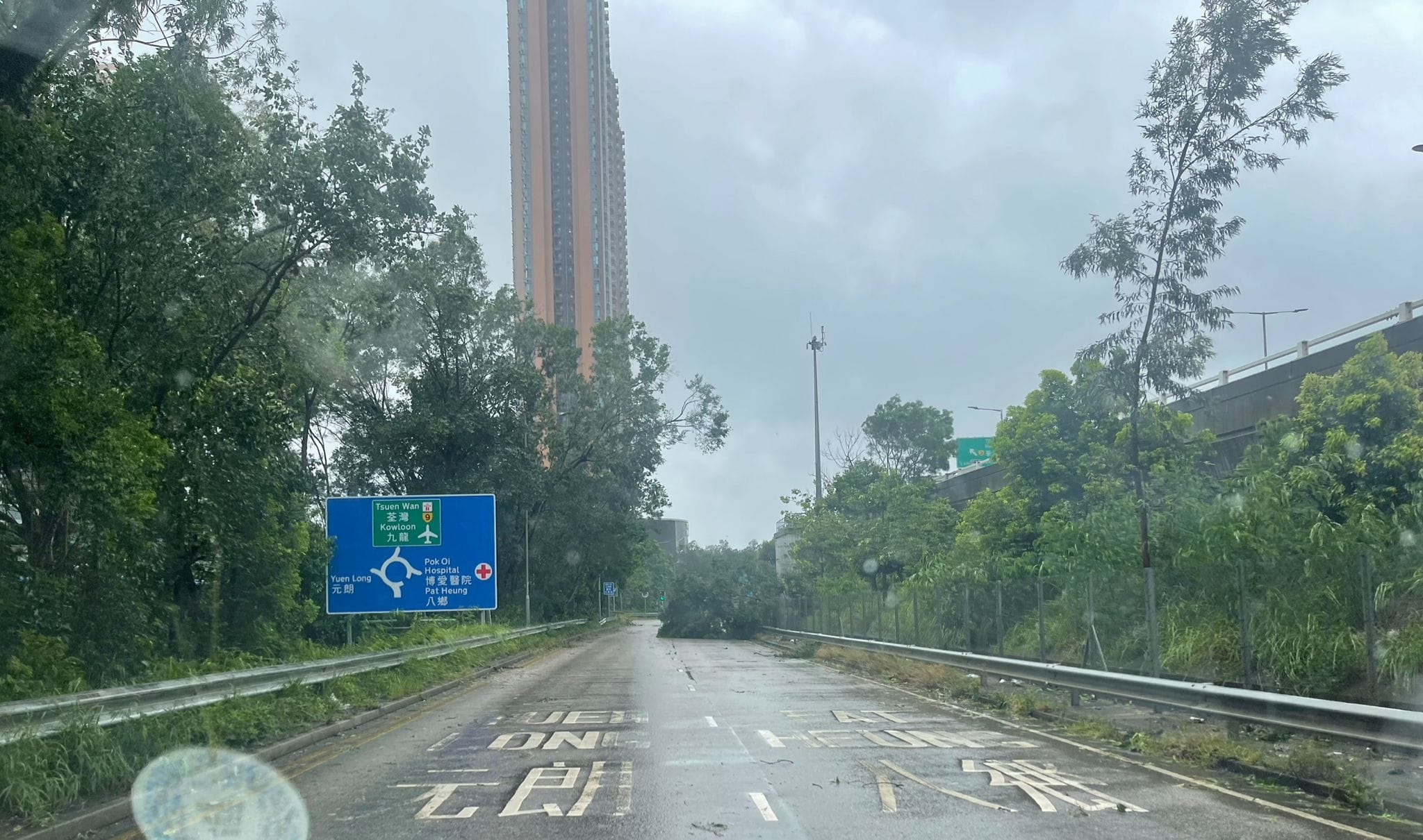 至中午12時許元朗公路支路往博愛交匯處方向有樹幹塌下行車道上,行經(jīng)車輛需慢駛。中午12時20分,上水彩園路往大頭嶺村方向近彩蒲苑亦有大樹倒塌,樹冠壓落一條行車線,現(xiàn)場交通受阻。