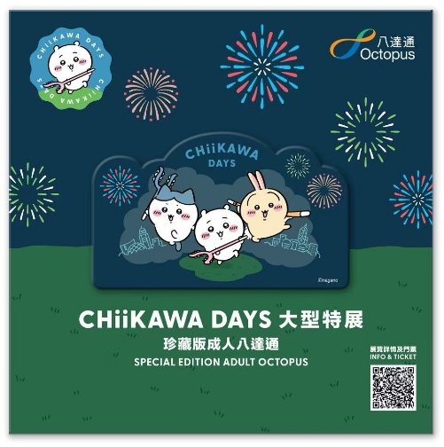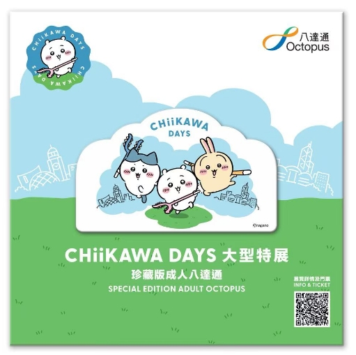 「CHIIKAWA DAYS 珍藏版八達通」共有兩款成人版,以Chiikawa和他的好友小八及兔兔為主題,手持討伐棒,背景配合香港獨有天際線,展現(xiàn)香港日與夜不同面貌。