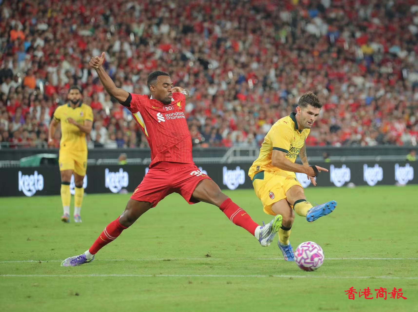 今晚(26日)假啟德體育園主場館進行的「香港足球盛會2025」,雙「紅」會吸引超過4萬9千名球迷入場觀賽,刷新啟德主場館入場人數(shù)紀錄,結果AC米蘭(紅黑軍)有拉菲爾利亞奧、羅夫度斯卓克各建一功,加上奧卡科梅開二度,以4比2擊敗利物浦(紅軍)。