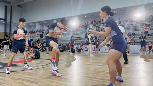 王嘉浩、畢可瀅、唐顥凡、徐涵16-18歲混合組4*30秒交互繩接力金牌