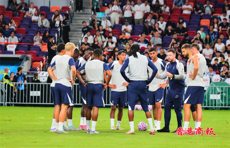 對(duì)上一次訪港已是2017年的熱刺,今次將挾歐霸盃冠軍身份而來,一眾球員於晚上6時(shí)步出球場,現(xiàn)場球迷立即以掌聲熱烈歡迎,大軍繞場一圈向擁躉打招呼,之後投入正式訓(xùn)練,球員先作拉筋熱身,再分開兩組玩「馬騮搶球」,其後進(jìn)行快跑,戲肉就是上演對(duì)抗賽,穿上背心的孫興民每當(dāng)觸球時(shí),都引來球迷的歡呼聲,最後部分球員還有12碼訓(xùn)練,整個(gè)訓(xùn)練過程約75分鐘。