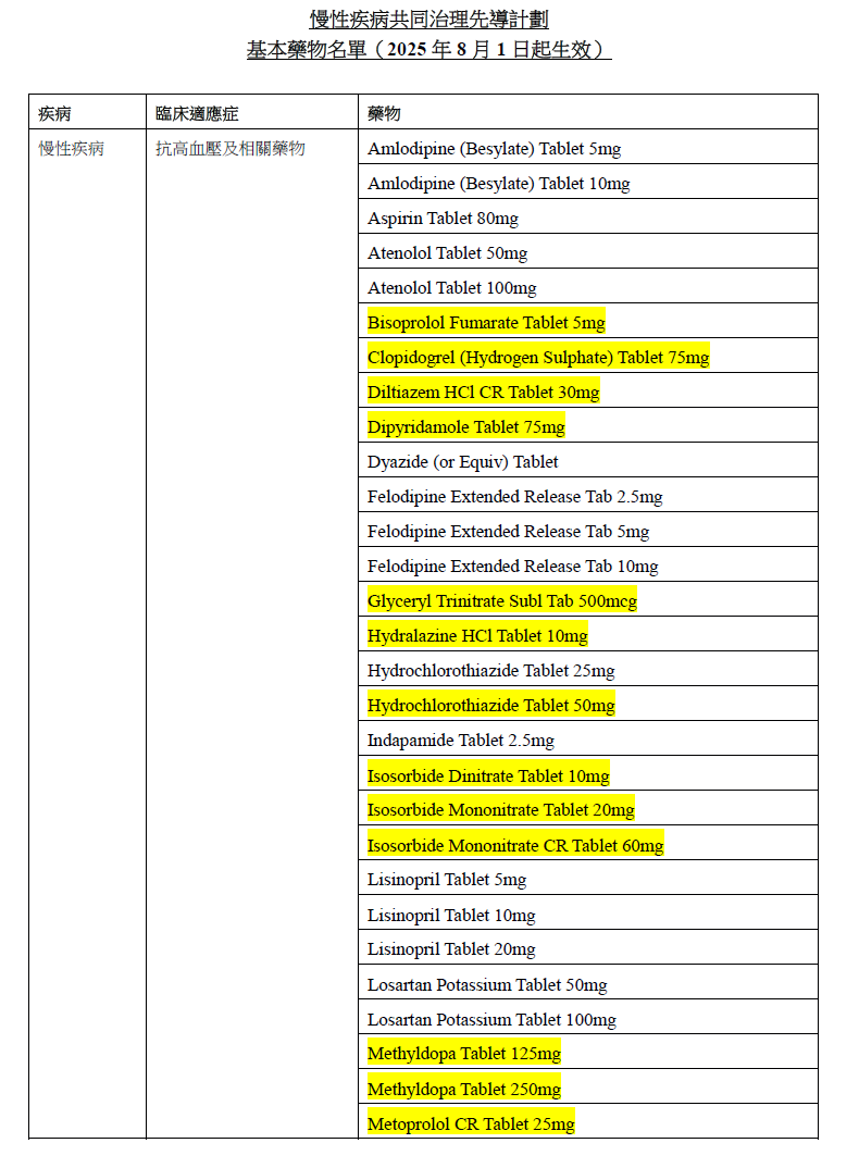 醫(yī)務(wù)衞生局今日(8月1日)公布,「慢性疾病共同治理先導(dǎo)計劃」(「慢病共治計劃」)基本藥物名單即日起由原來的59項擴大至涵蓋114項藥物,為參加計劃的家庭醫(yī)生提供更多藥物選項,以照顧計劃參加者不同的臨床用藥需求。