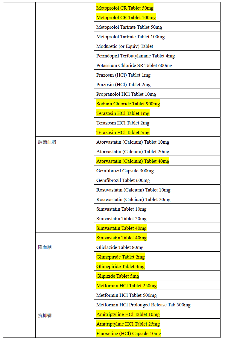 「慢病共治計劃」設(shè)有基本藥物名單,涵蓋治療慢性疾病的常用藥物(如抗高血壓、調(diào)節(jié)血脂和降血糖的藥物),以及治療偶發(fā)性疾病的常用藥物。在政府資助下,獲處方名單所列藥物的參加者無須支付任何藥費。名單所列藥物將會是未來推出的社區(qū)藥物名冊的基礎(chǔ)部分。為更切合參加者的臨床需要,政府不時審視該基本藥物名單。