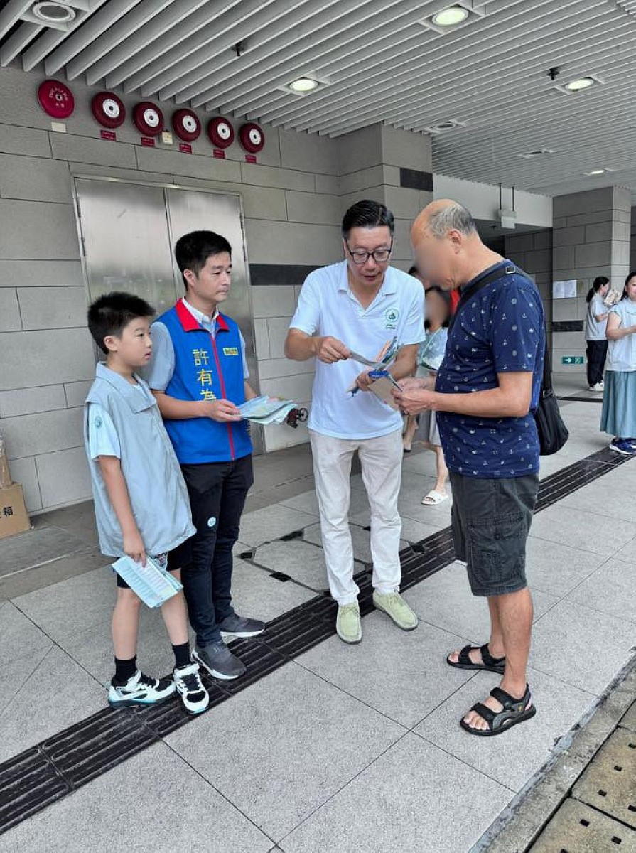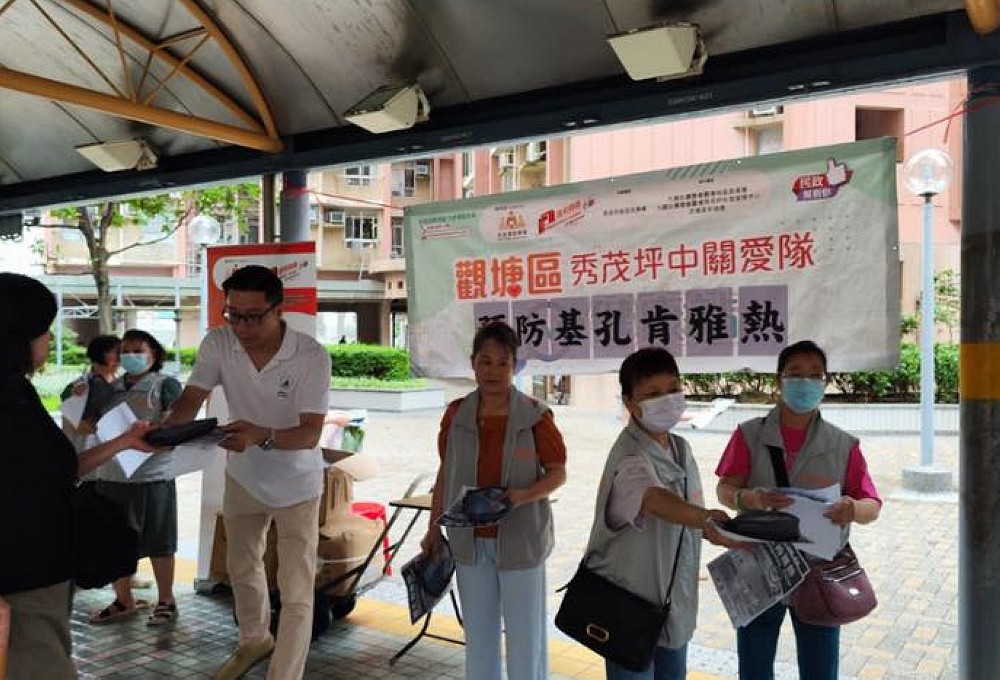 日前香港錄得今年首宗基孔肯雅熱個案,為預防基孔肯雅熱和其他蚊傳疾病在本港傳播,觀塘區(qū)議員與觀塘區(qū)關愛隊在安達邨及區(qū)內向居民宣傳防蚊資訊。