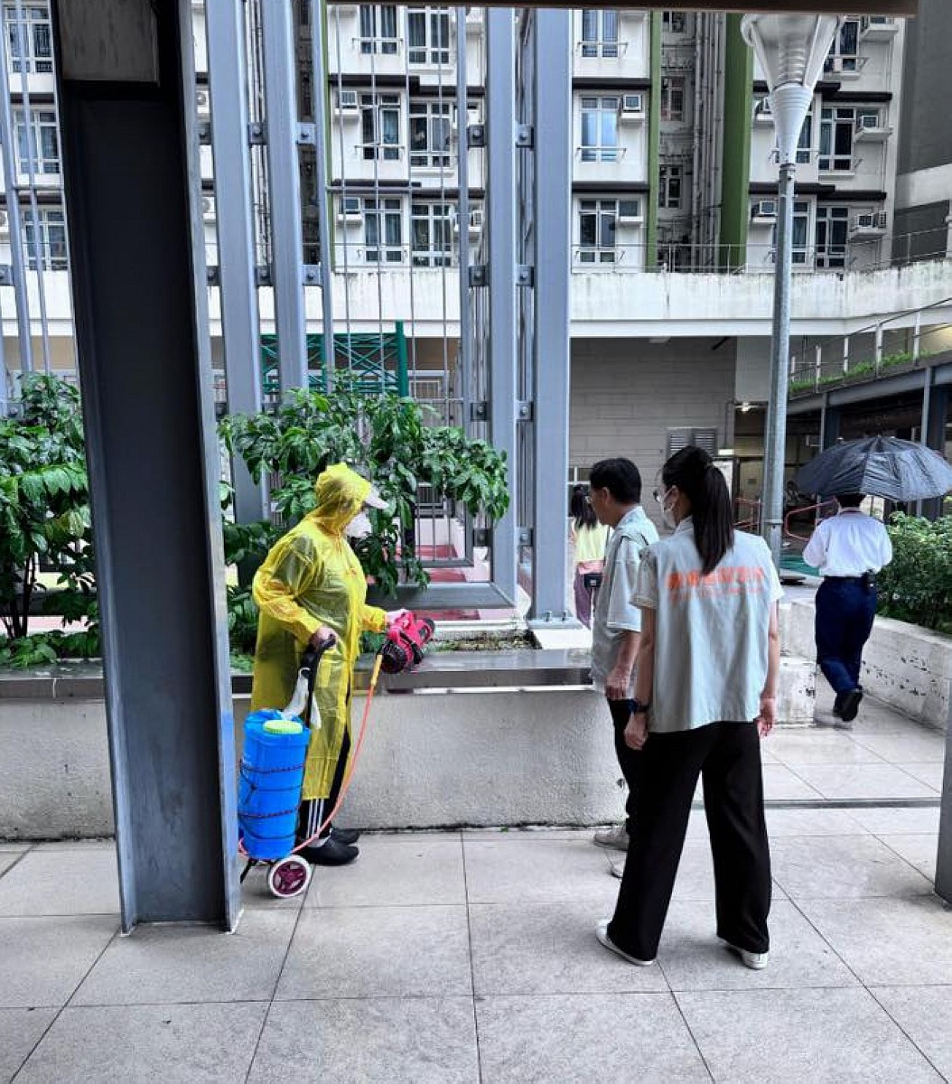 關愛隊除經與居民建立聯(lián)繫渠道、街站以及大廈信箱向居民發(fā)放衞生防護中心有關基孔肯雅熱資料單張,亦落區(qū)派發(fā)蚊怕水、蚊貼、防蚊包等物資,呼籲居民提高警覺,採取防蚊措施。此外,關愛隊同時肩負「下情上報」角色,向政府部門建議蚊子較易滋生地點,讓相關部門考慮其後進行霧化滅蚊工作,積極防控蚊患。