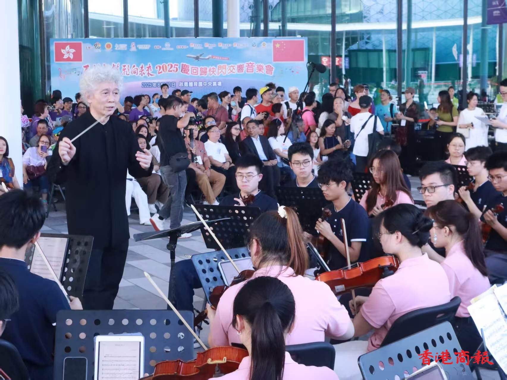 由香港華菁會、香港青年愛樂樂團慈善基金會,主辦的「再啟新篇,飛向未來」2025慶回歸快閃交響音樂會,今日(10日)下午在啟德體育園中央廣場舉行,民政及青年事務局政治助理張進樂、啟德體育園總監(jiān)(策略發(fā)展)鄧竟成、九龍西立法會議員梁文廣、香港華菁會秘書長朱江等人獲邀出席活動。