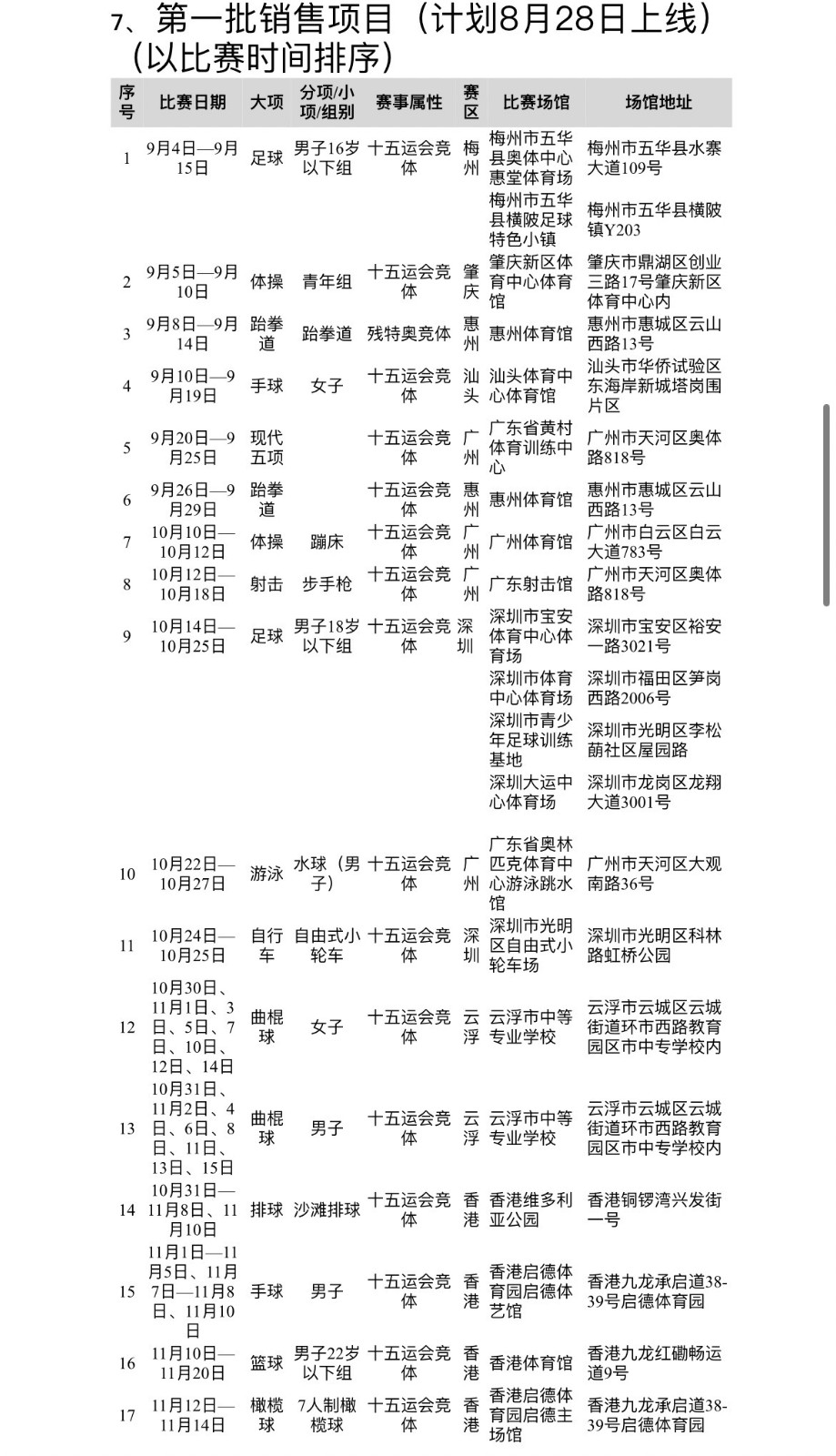 從8月28日起第一批次比賽門票正式開售,這一次開售項目包括足球、籃球、體操、射擊等17個項目。熱門項目每場次每個訂單限購3張,普通項目每場次每個訂單限購6張,公眾可通過官方票務(wù)平臺購買比賽門票。隨後的賽事門票,將根據(jù)競賽安排分階段、分批次釋放,按開賽時間順序上架銷售。