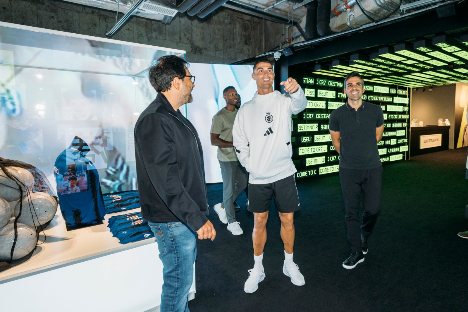 C朗拿度與前隊友兼好友、Al Nassr CEO José Semedo、Al Nassr Sporting Director Sim?o Coutinho及CR7? Family Office團隊(Luis Parafita、Tomás Froes)一同參觀展館。眾人對館內(nèi)各個展區(qū)表現(xiàn)興奮,C朗拿度更與自己的蠟像互動,並親身體驗場內(nèi)多項互動體驗,包括複製並重現(xiàn)他在里斯本的第一個房間以及其YouTube頻道《UR Cristiano》的錄影室。