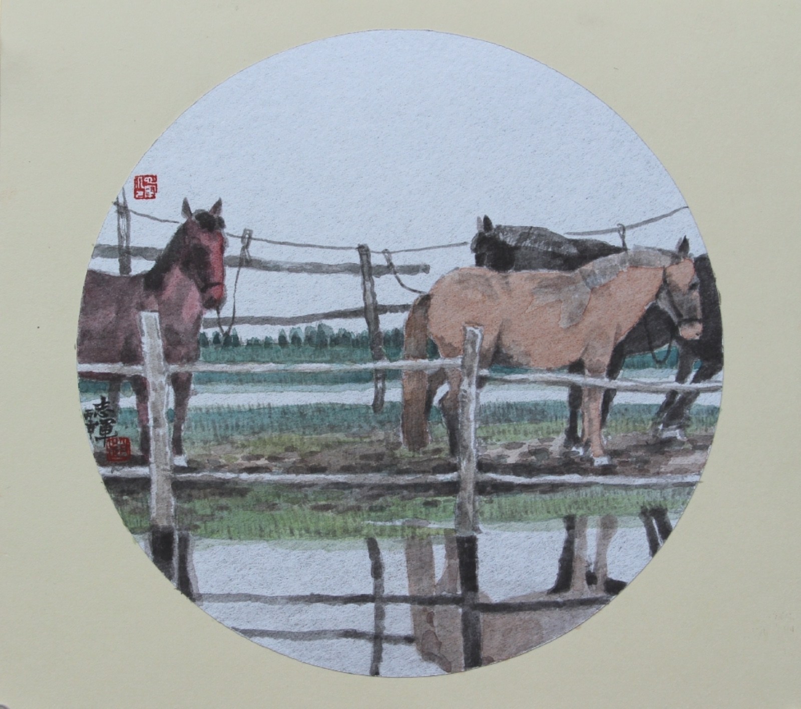 《正午時(shí)光》38cm*38cm 水墨設(shè)色 作品創(chuàng)作者:趙志軍(字之境、號(hào)大郡)
